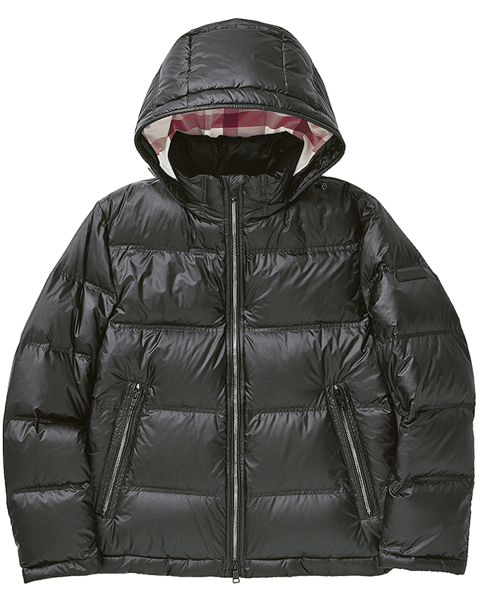 太番手の糸で凹凸のある表情を生み出し、ジャカード織りでCBチェックを表現したダウンジャケットは、シンプルながら多彩な表情を見せる。