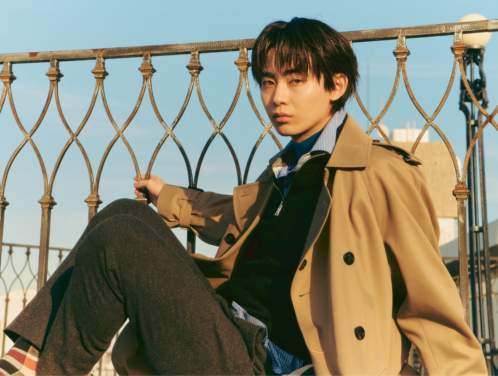 2019年よりメンズノンノ専属モデルとして活動開始。2021年ドラマ「じゃない方の彼女」で俳優デビュー。近年の出演作には、ドラマ「御上先生」(’25年)、「DOPE 麻薬取締部特捜課」(’25年)、「そこから先は地獄」(’25年)、映画「火喰鳥を、喰う」(’25年)など。現在、映画「ロマンティック・キラー」が公開中。2026年1月より「コスメティック・プレイラバーseason2」(フジテレビ)が放送開始。