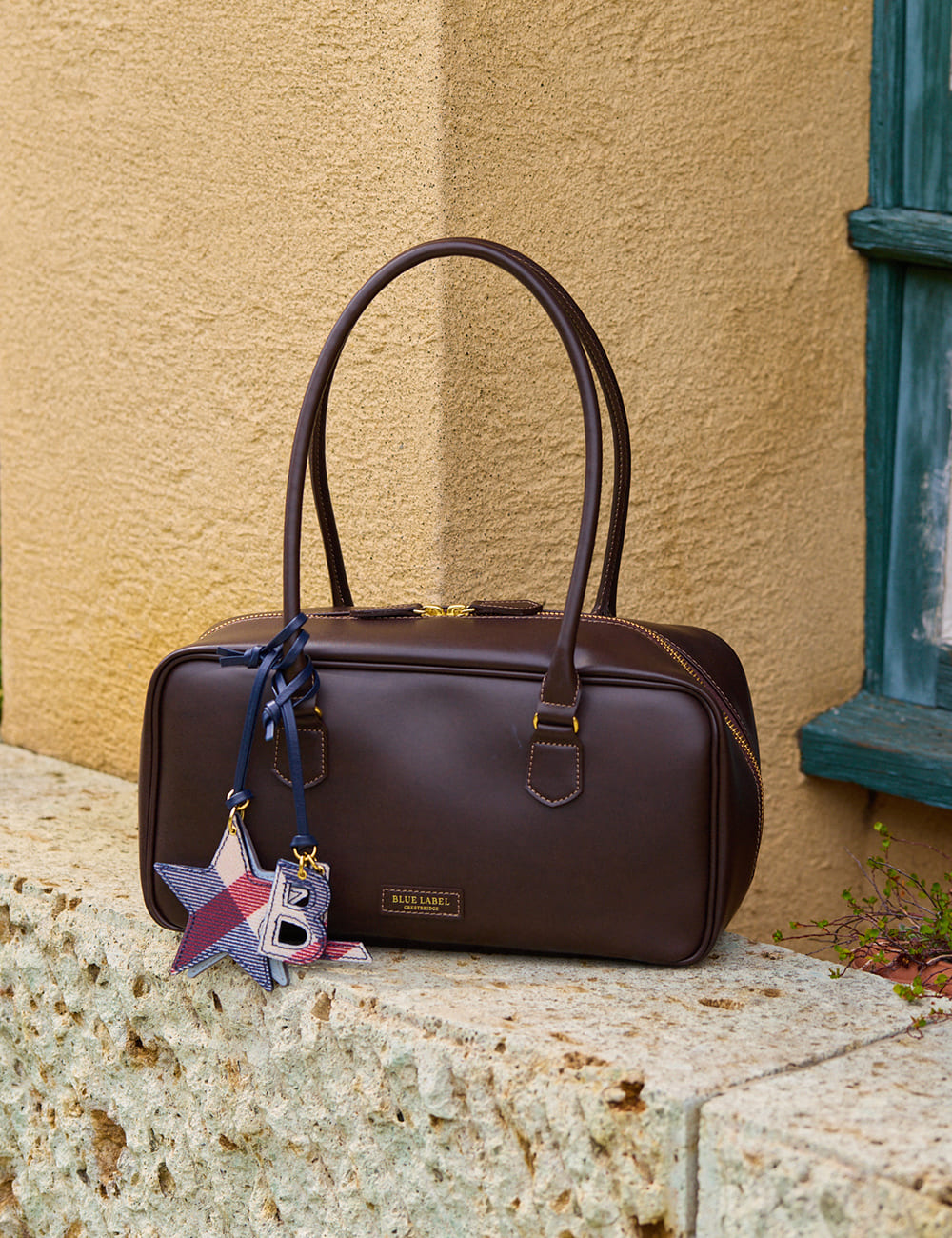 品と存在感を兼ね備えた秋のパートナーバッグ 。クラシカルなブラウンレザーに、遊び心あるチャームを添えて。