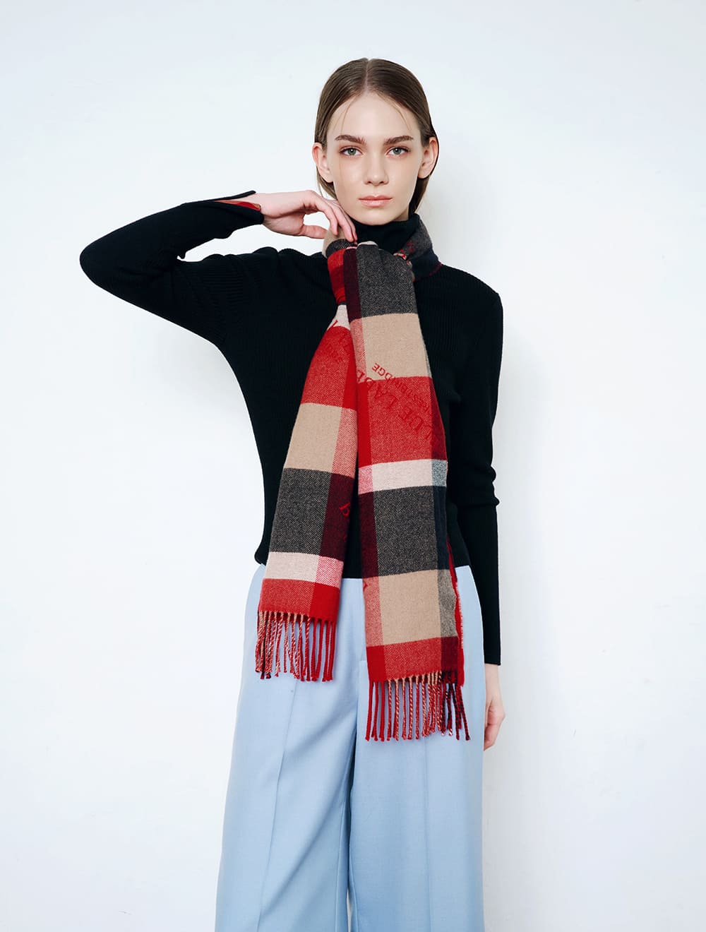 【10th ANNIVERSARY】クレストブリッジチェックロゴジャカードカシミヤマフラー
