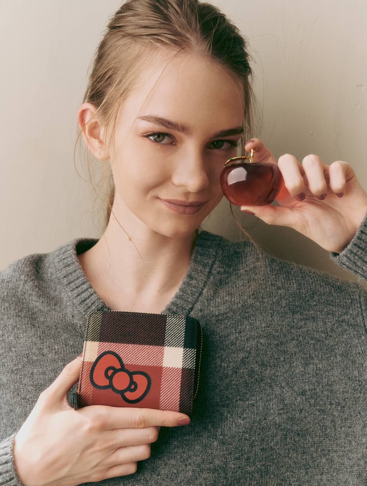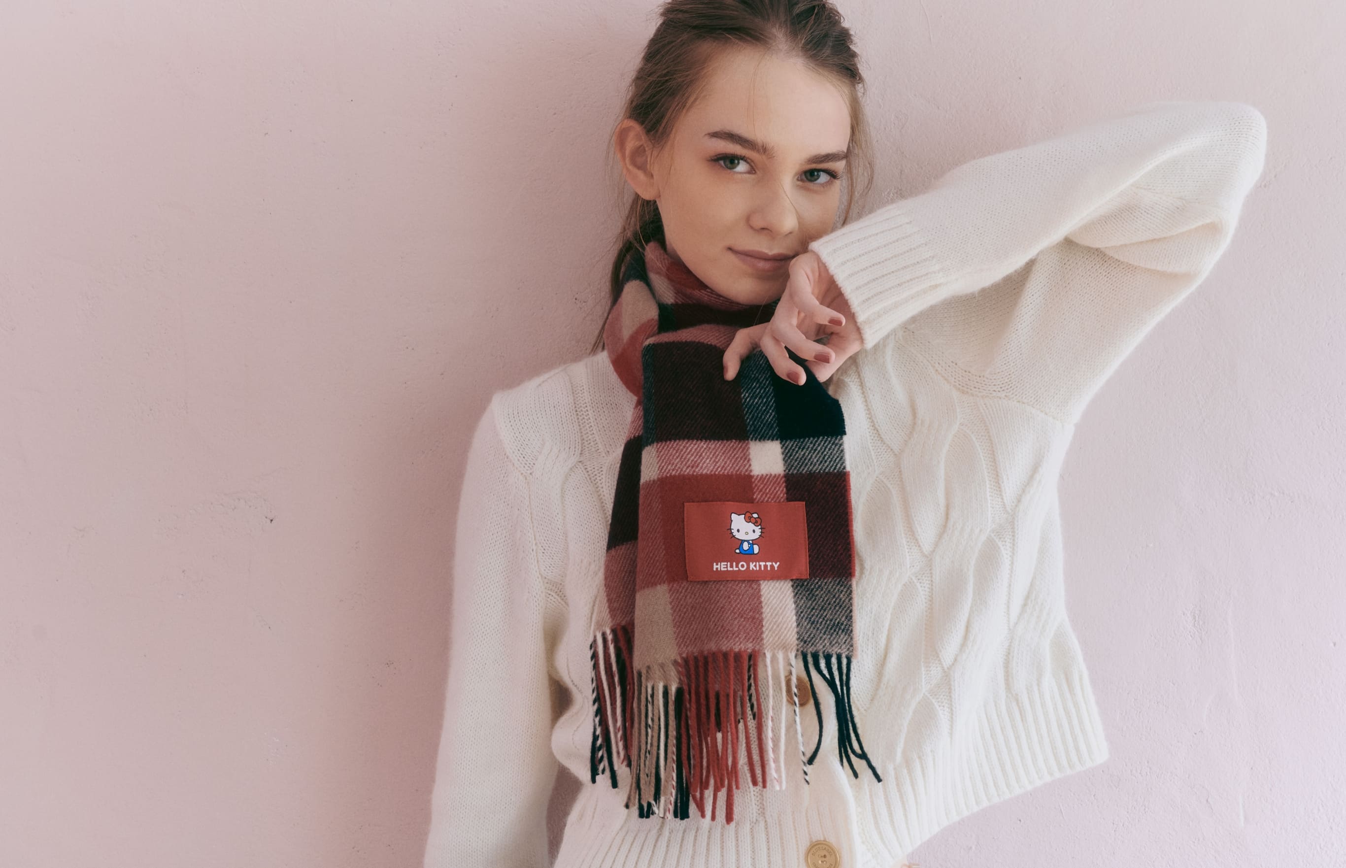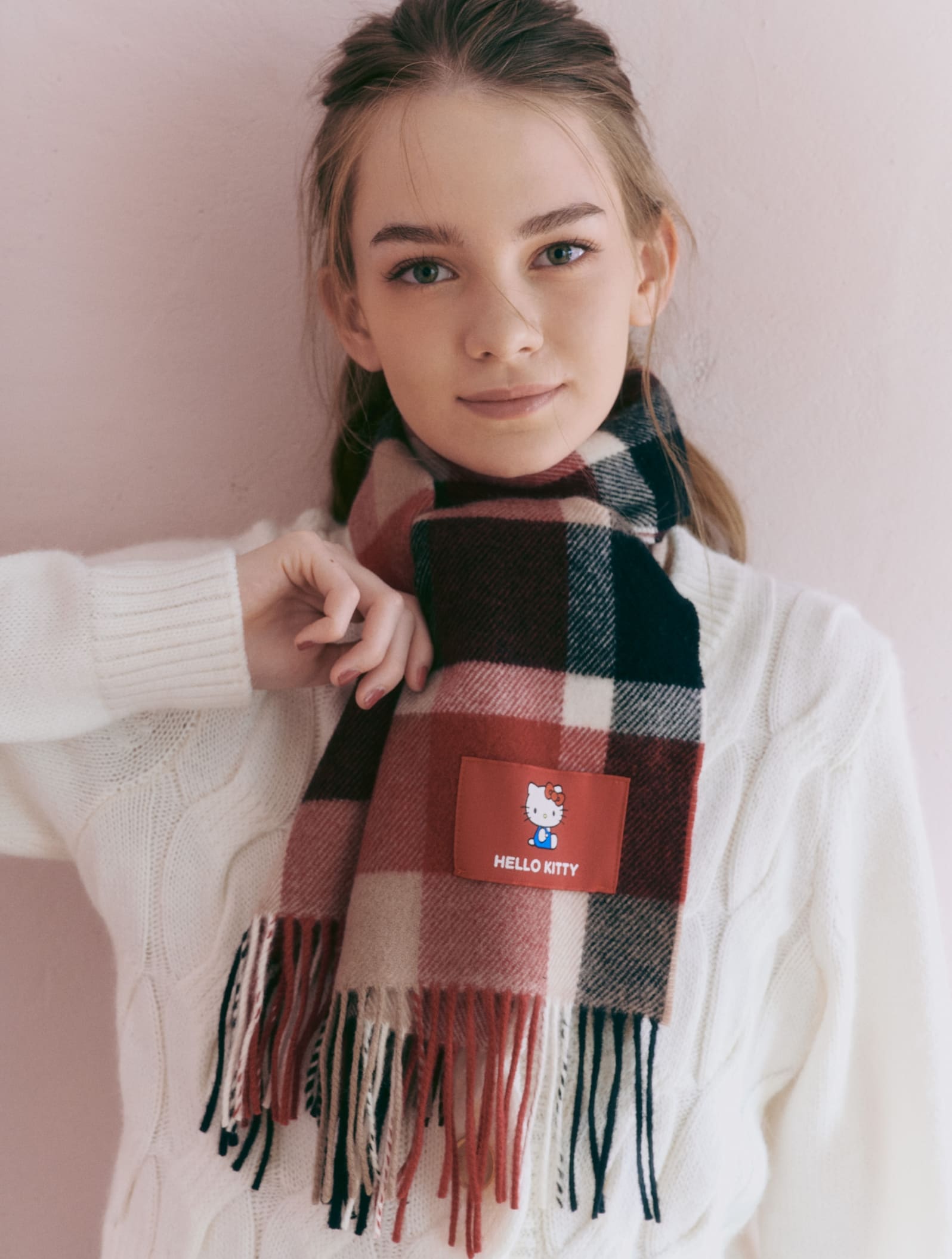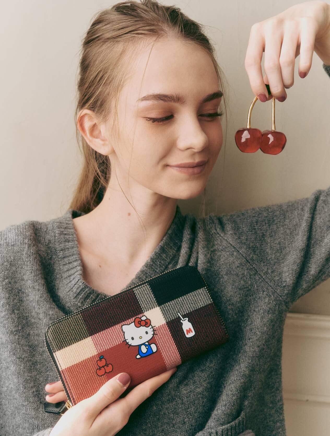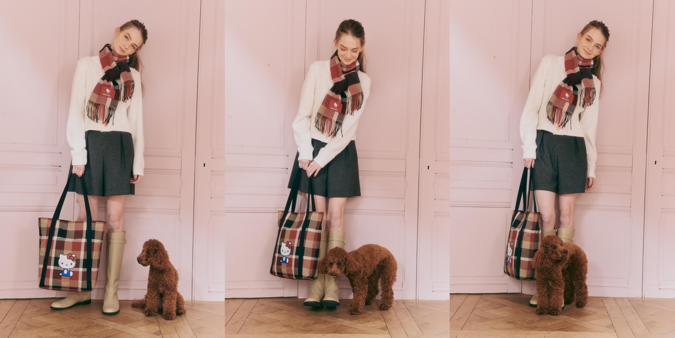 クラシカルなチェックに映えるハローキティのモチーフ。