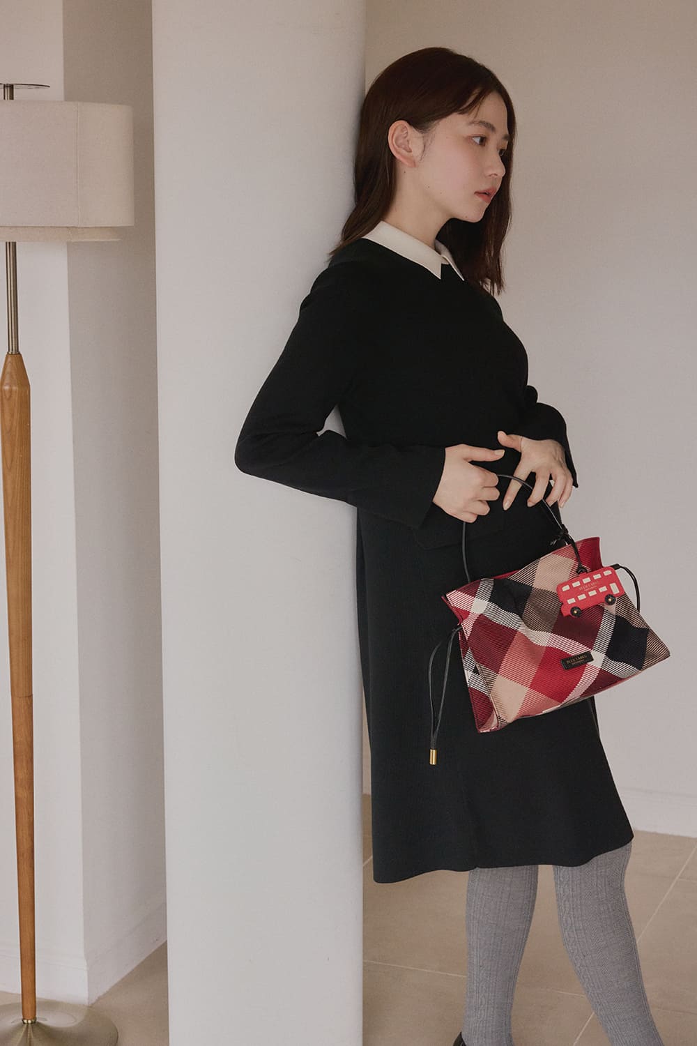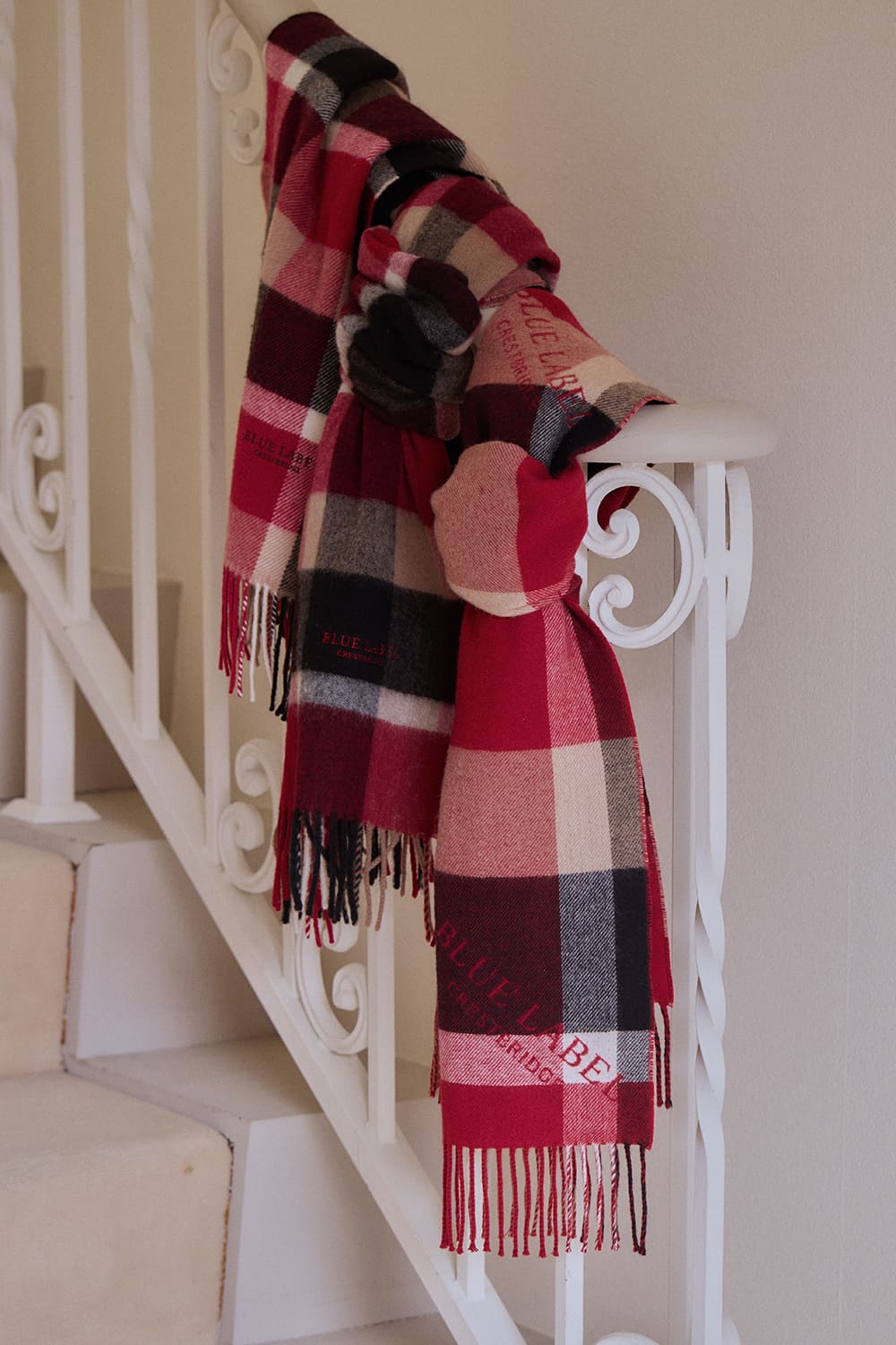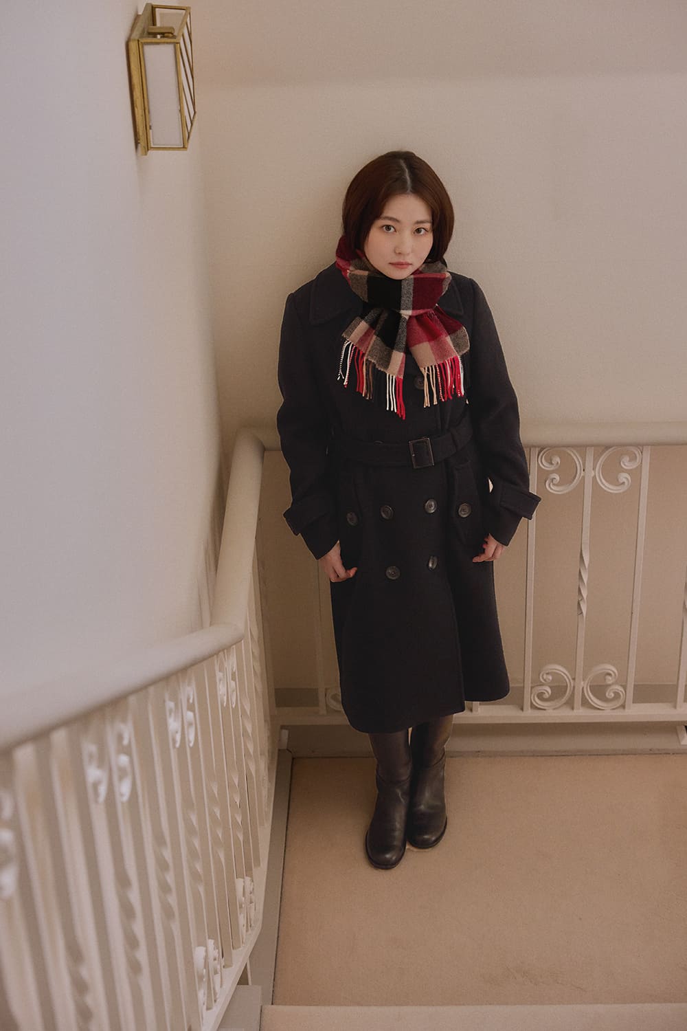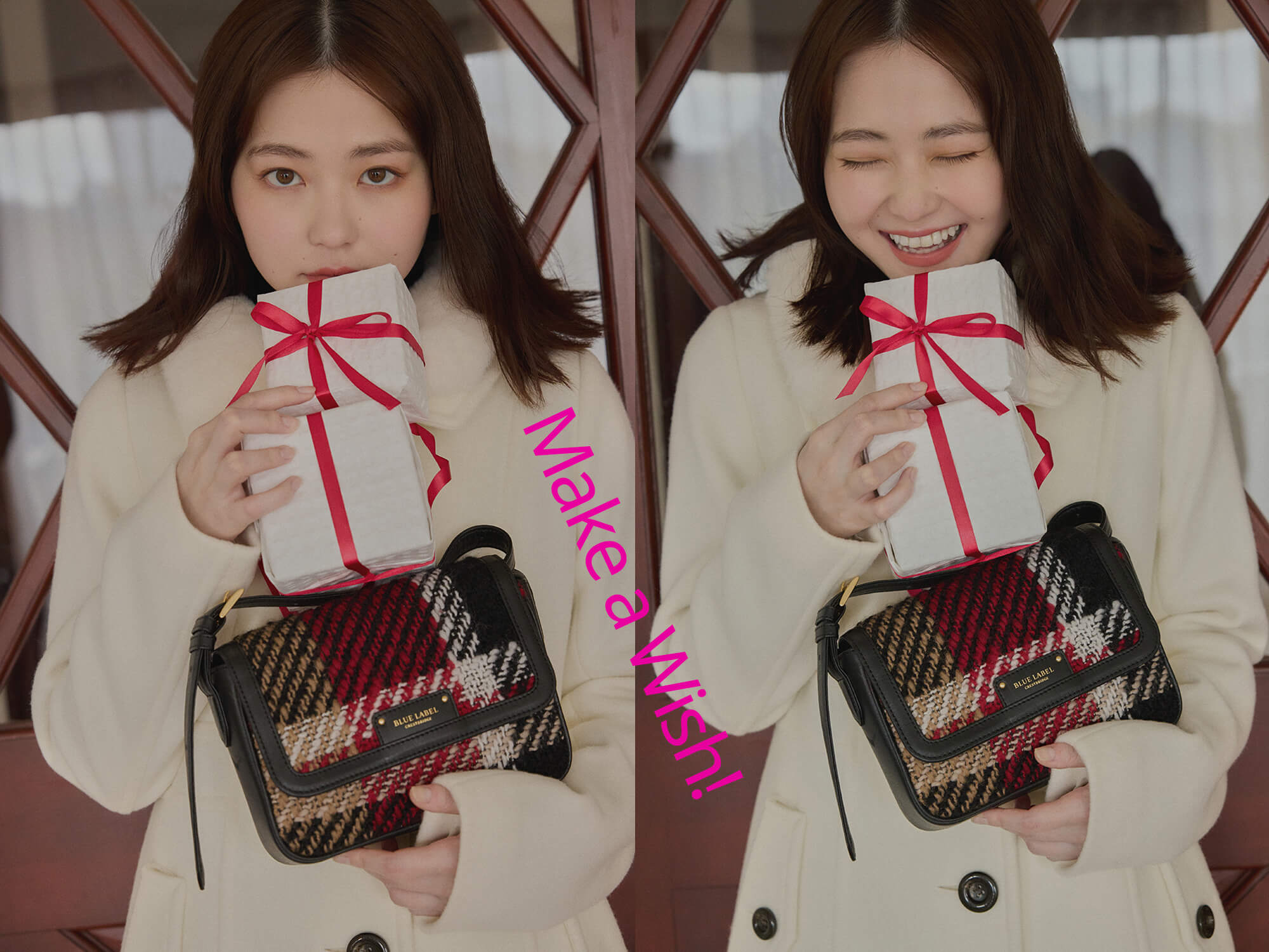俳優の山田杏奈がブルーレーベル・クレストブリッジと過ごす聖なる日。エレガントなクレストブリッジチェックに囲まれて、山田杏奈のノーブルな個性がさらに輝く。