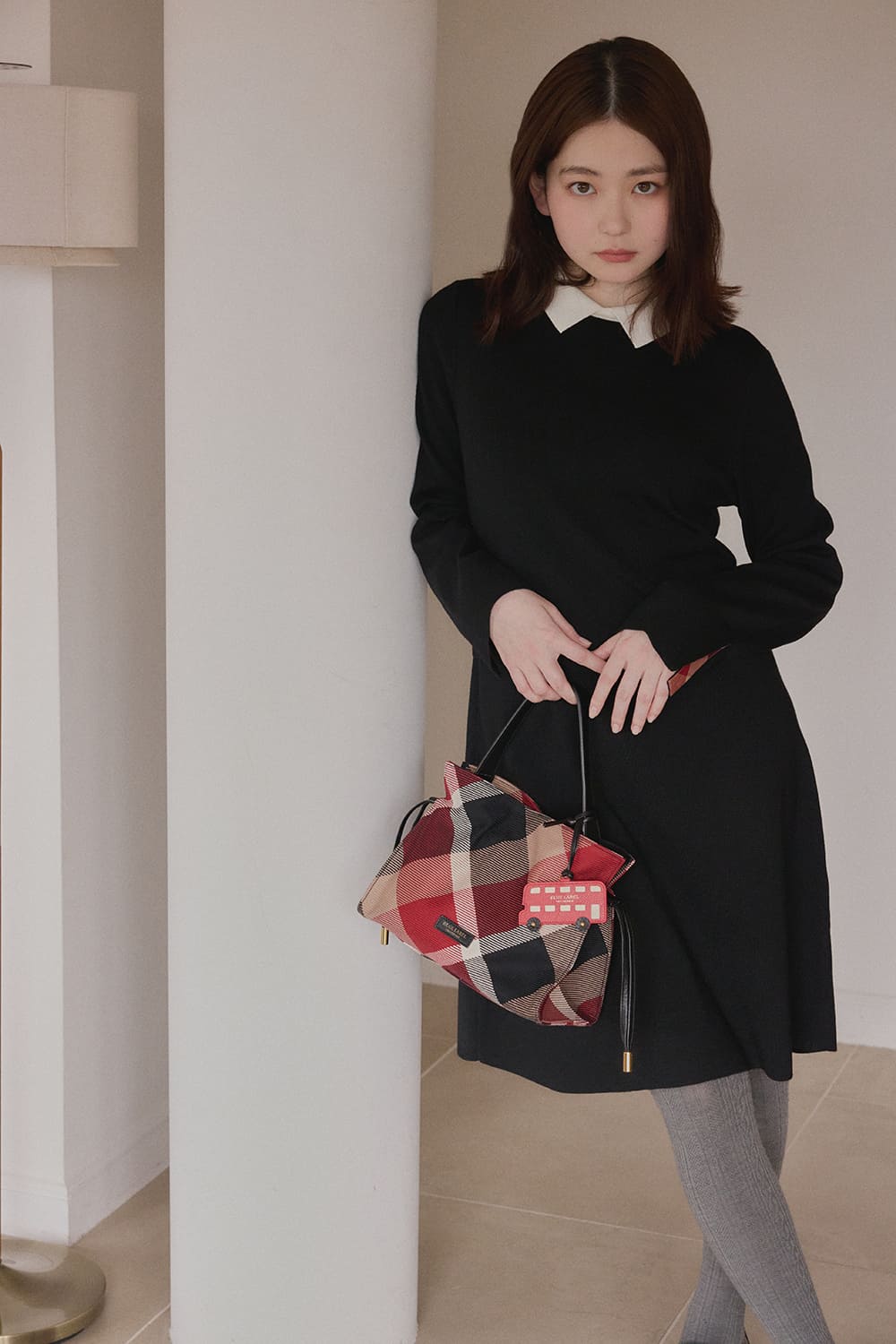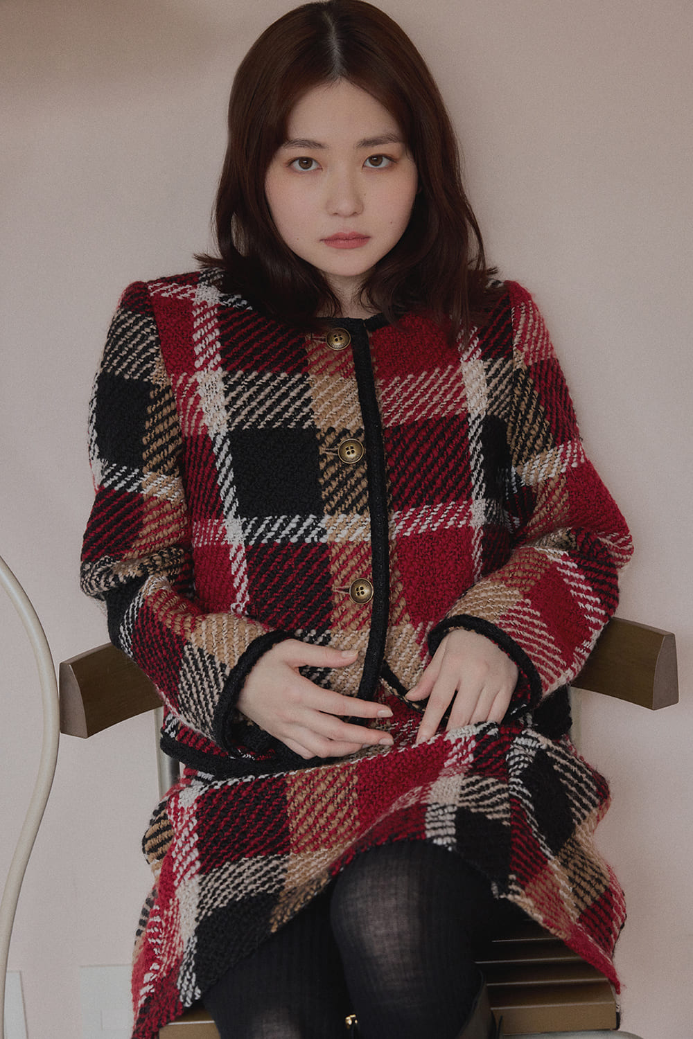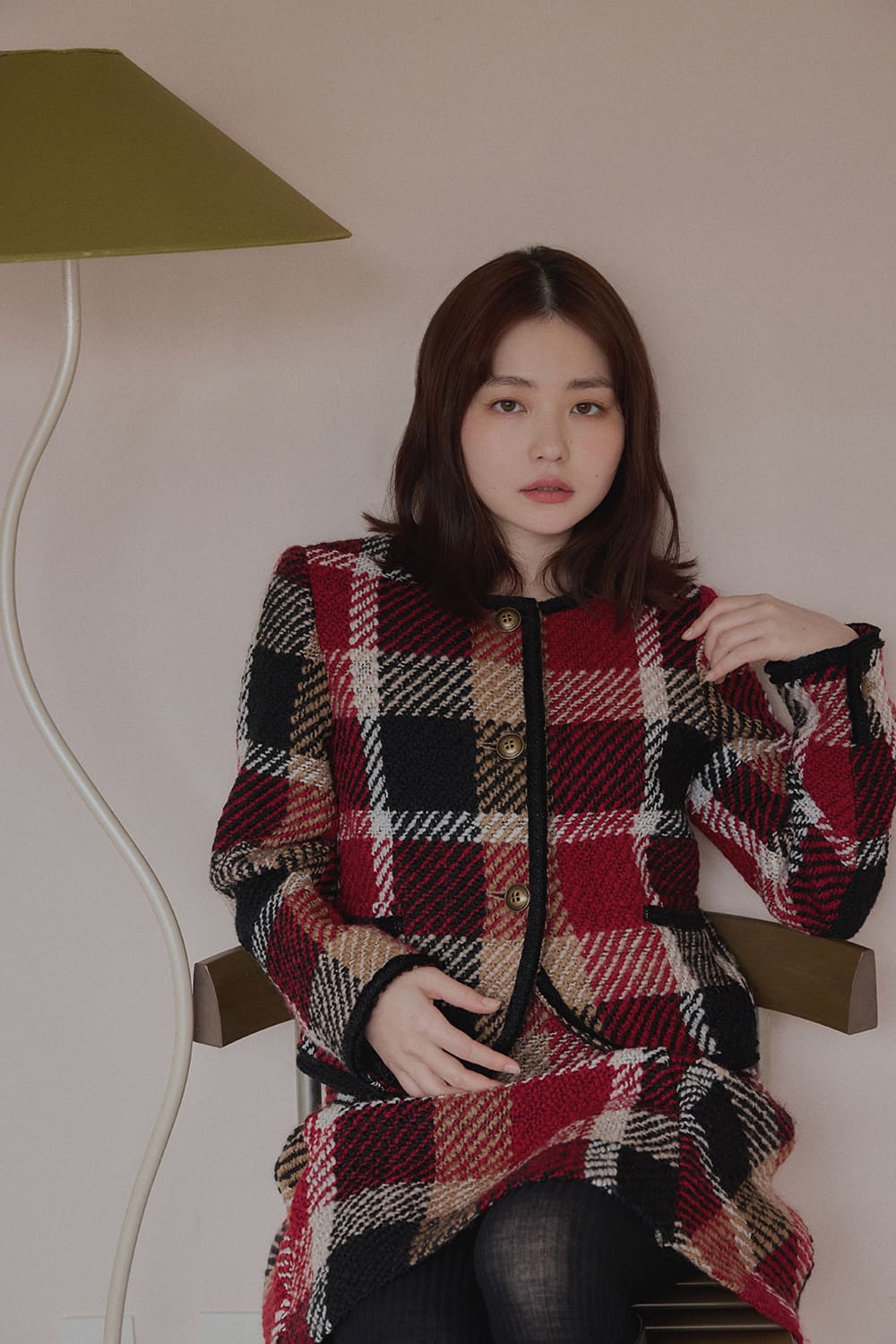 柔らかさの中に凛とした強さを秘め、着実に活躍の幅を広げている山田杏奈が今年のホリーデーシーズンに選んだのは、情熱の赤と意志の強さを示す黒が交差するチェック柄のセットアップ。ツイードの可愛らしさと自分らしくファッションを謳歌して。