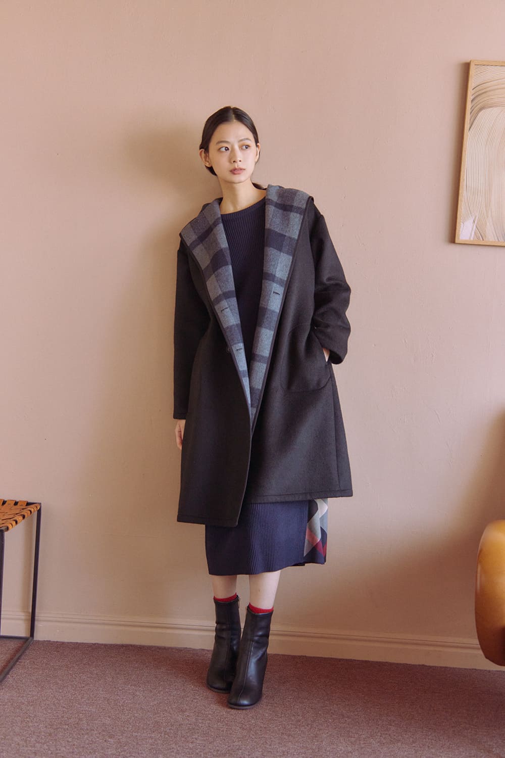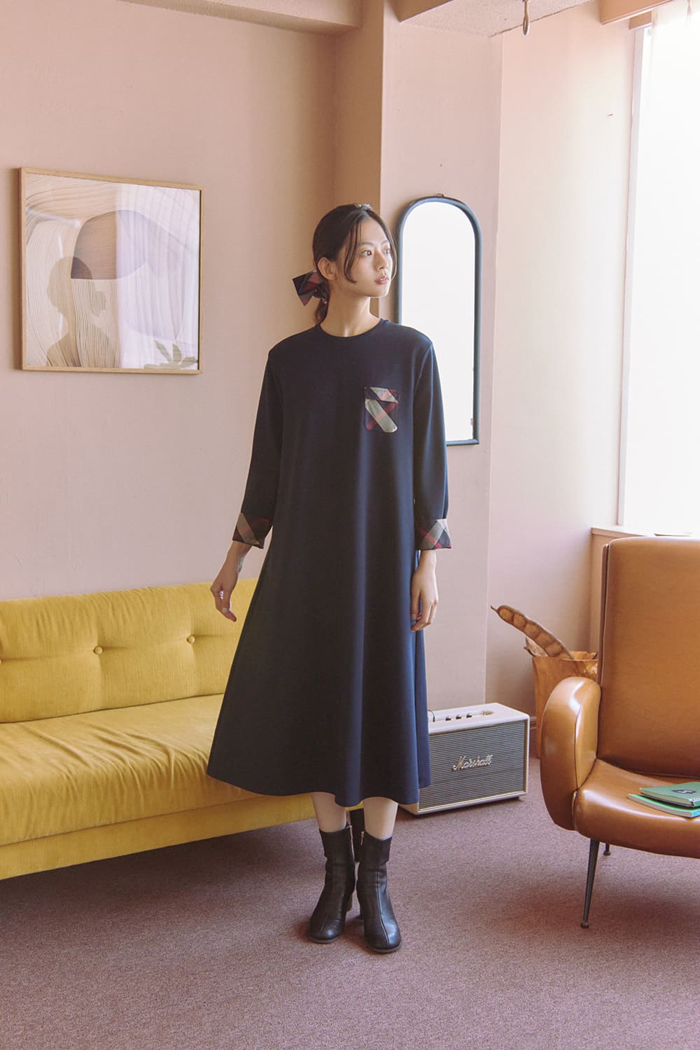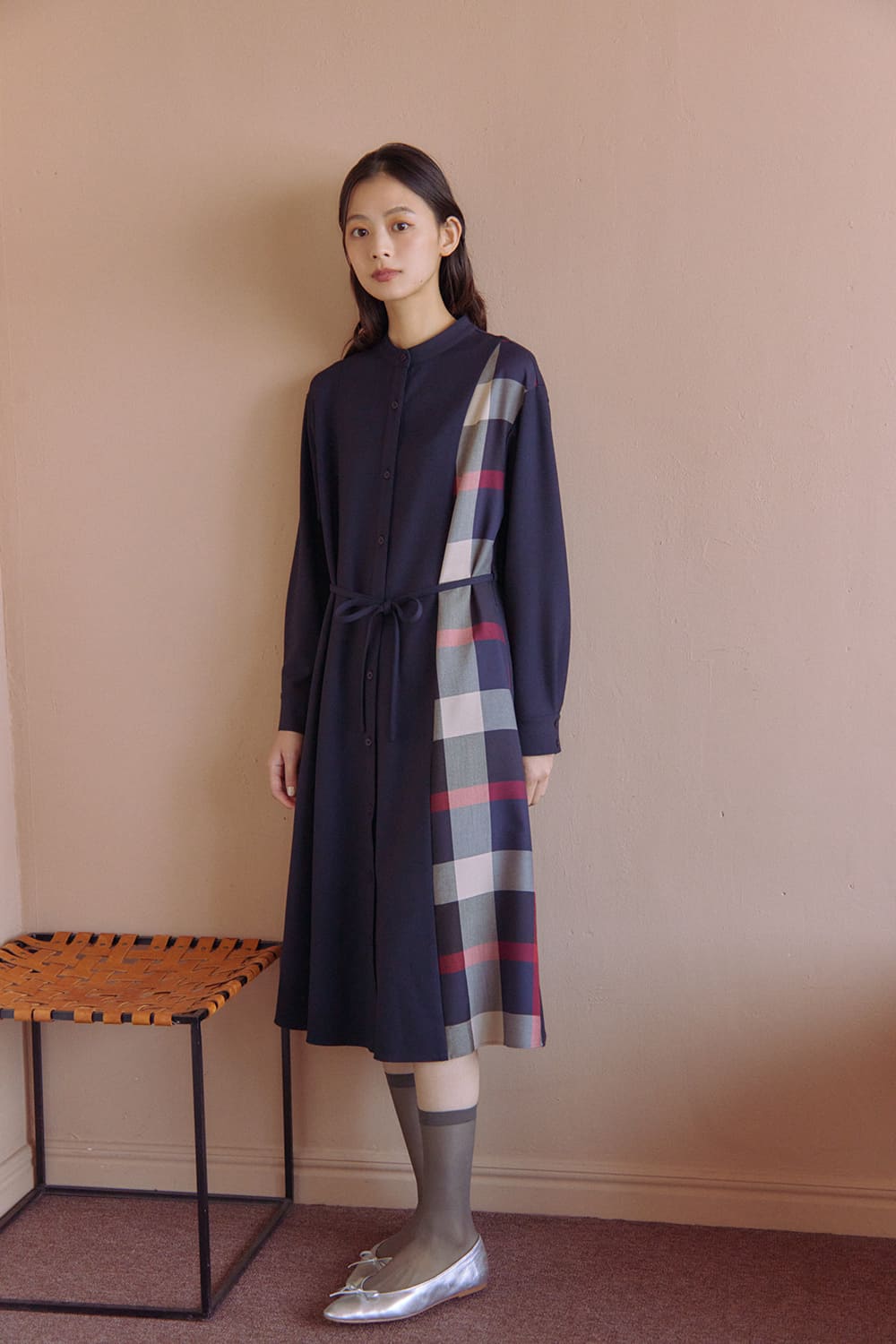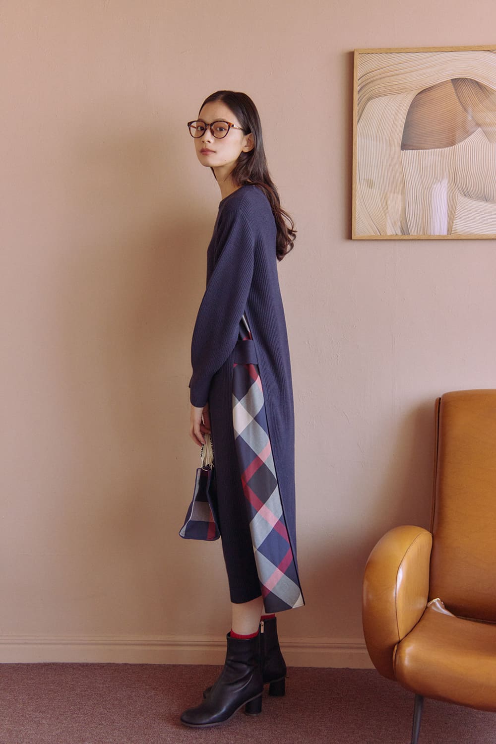 サイドチェック切替ラウンドネックワンピ-ス ¥28,600