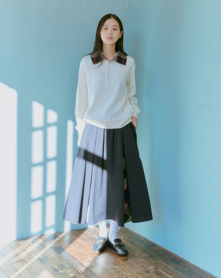 リラックスした着心地の中に、さりげなく効かせたCB CHECKが、