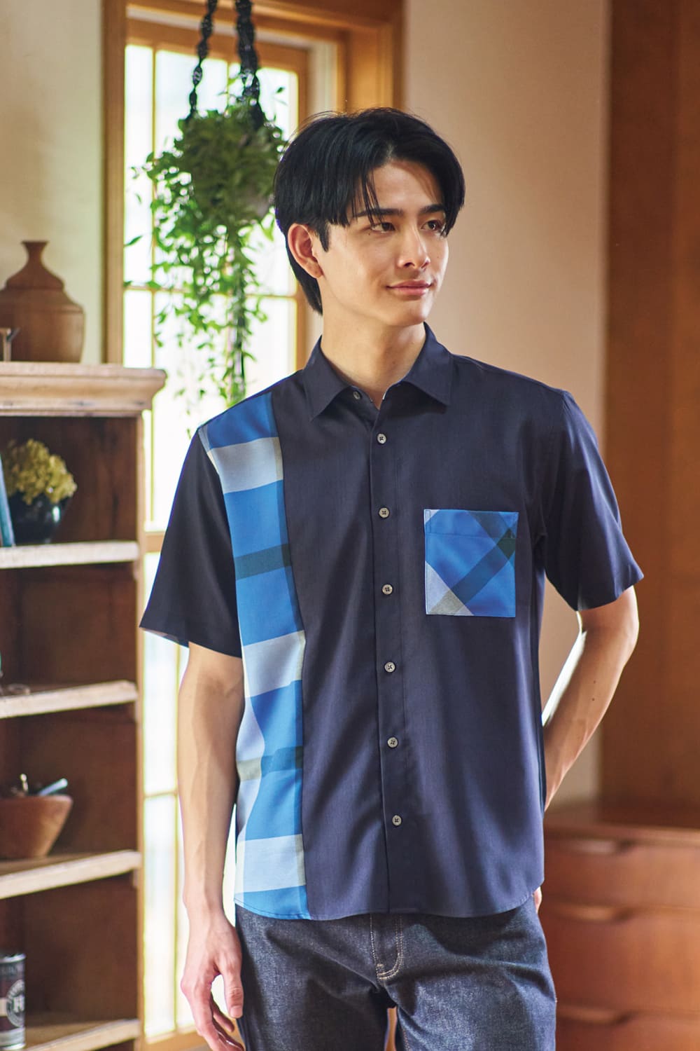 【予約販売】パーシャルチェックハーフスリーブシャツ
