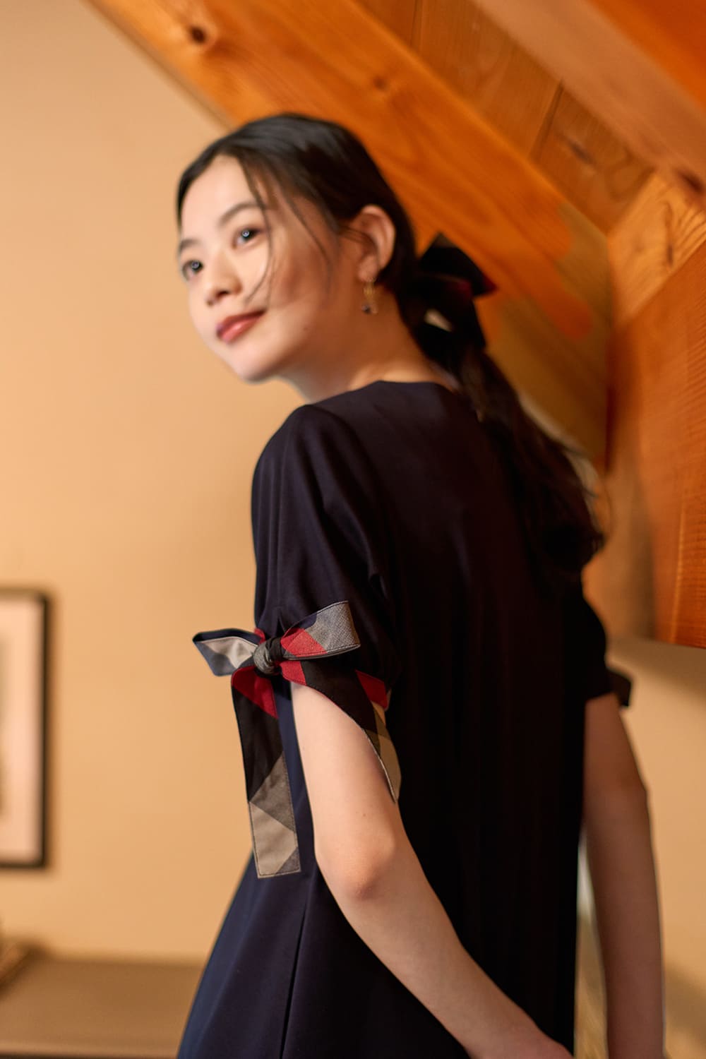 【予約販売】【Quiet checkシリーズ】リボンスリーブT