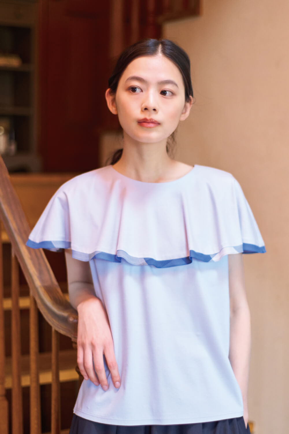 【予約販売】【Quiet checkシリーズ】ラッフルケープトップス
