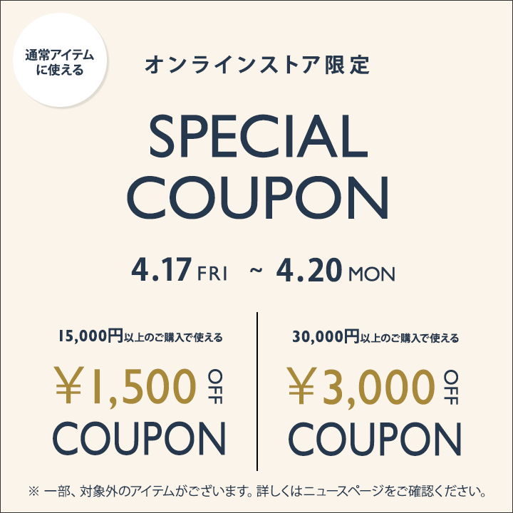 通常アイテムに使えるスペシャルクーポン | クレストブリッジ公式オンラインストア