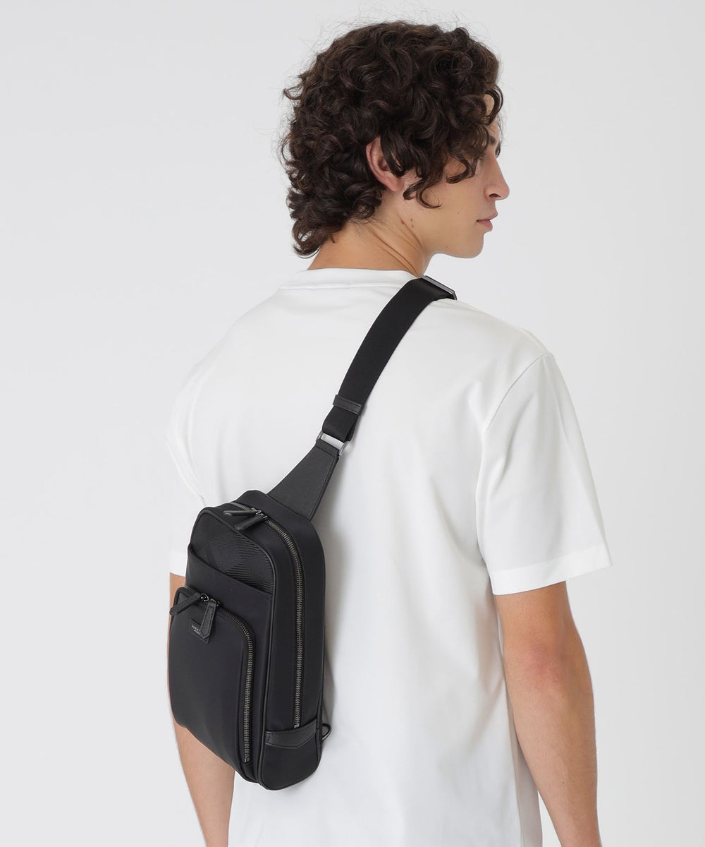 - ナイロンコンビカルゼシャドークレストブリッジチェックビジネスボディバッグ