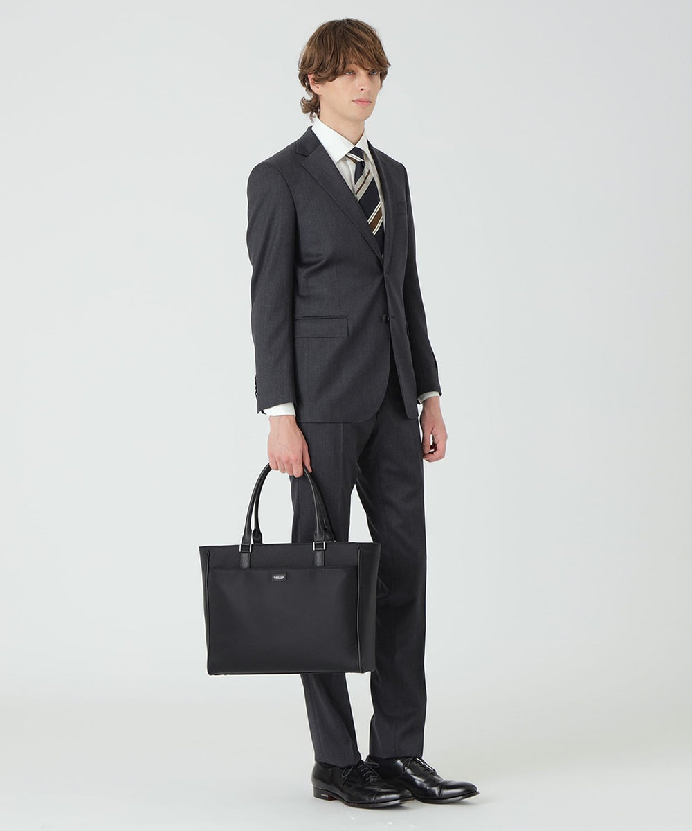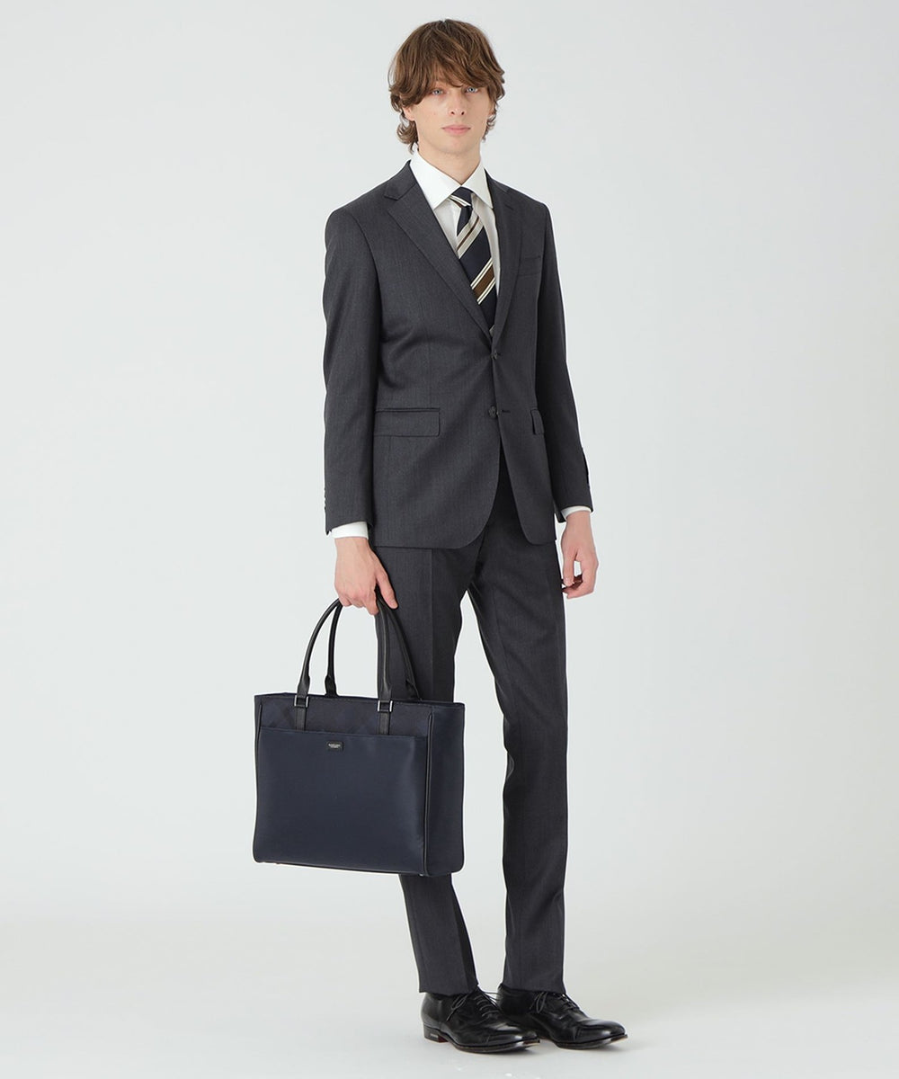ブランドアイコンのクレストブリッジチェック柄を織りで表現し、ポイント使いしたトートバッグ。ビジネスシーンに適応したサイズ感に加えて、ボトルホルダーやカードポケット、ペンポケットなど多様なポケットを配置しており、機能性・収納力を重視した仕様です。トリムにエンボスの合成皮革を使用する事で、上品で洗練された雰囲気に仕上げています。