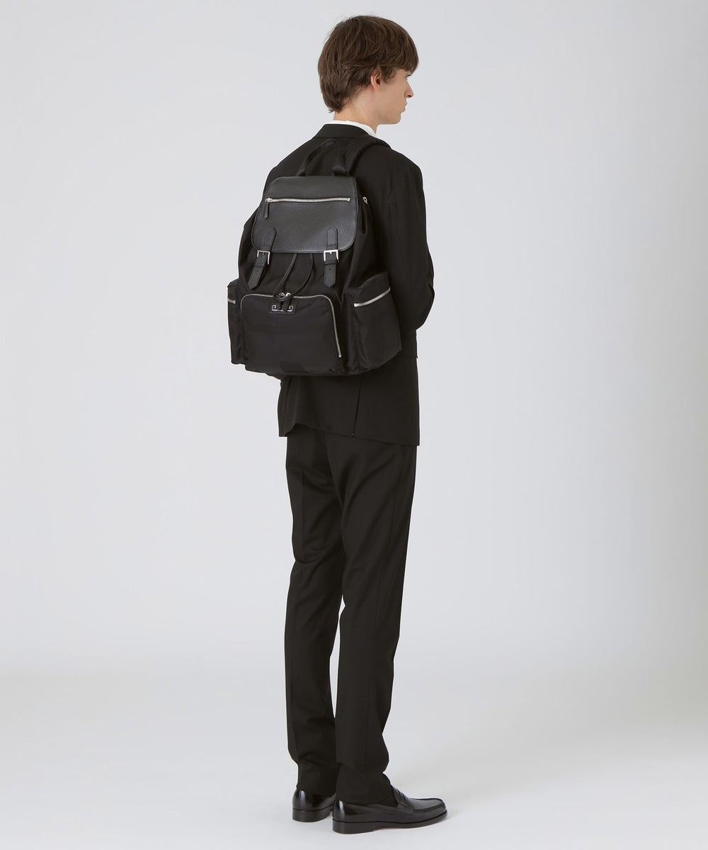 イタリアのファブリックメーカーLIMONTA(リモンタ)社に完全別注したシャドーチェックジャカード素材を使用し、附属にも拘り抜いたブランド設立10周年記念プレミアムバックパック。オリジナルのメタルロゴプレートを使用し、フラップ部分をレザーにすることで高級感漂う仕様になっています。またサイド部分に内装貫通ファスナーを施すことで、使い勝手の良さも兼ね備えています。