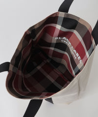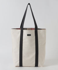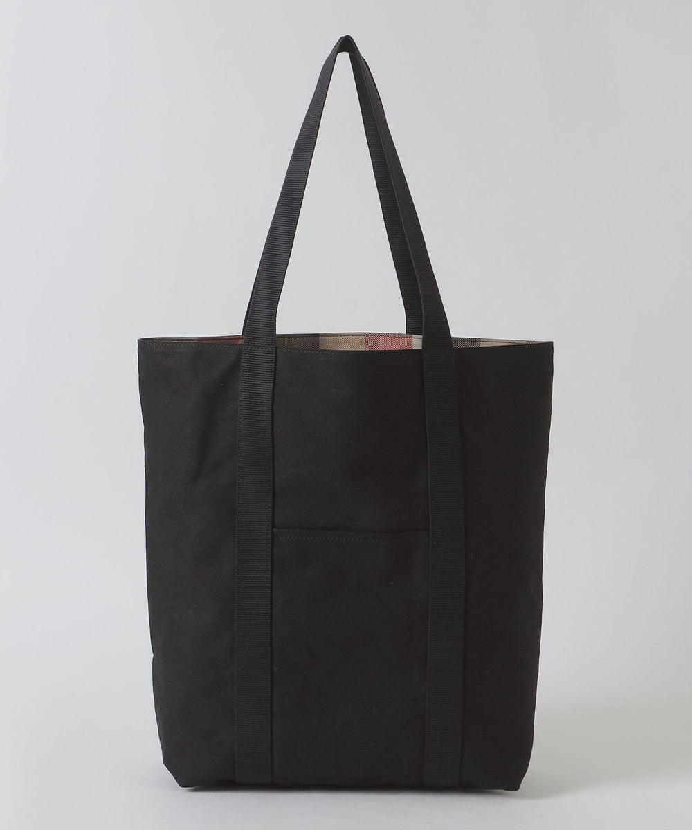 無地面、チェック面の両面を使い分けられるリバーシブルトート。クレストブリッジチェックがコーディネートにアクセントを与えます。A4サイズもしっかり入る使い勝手の良いサイズ感です。