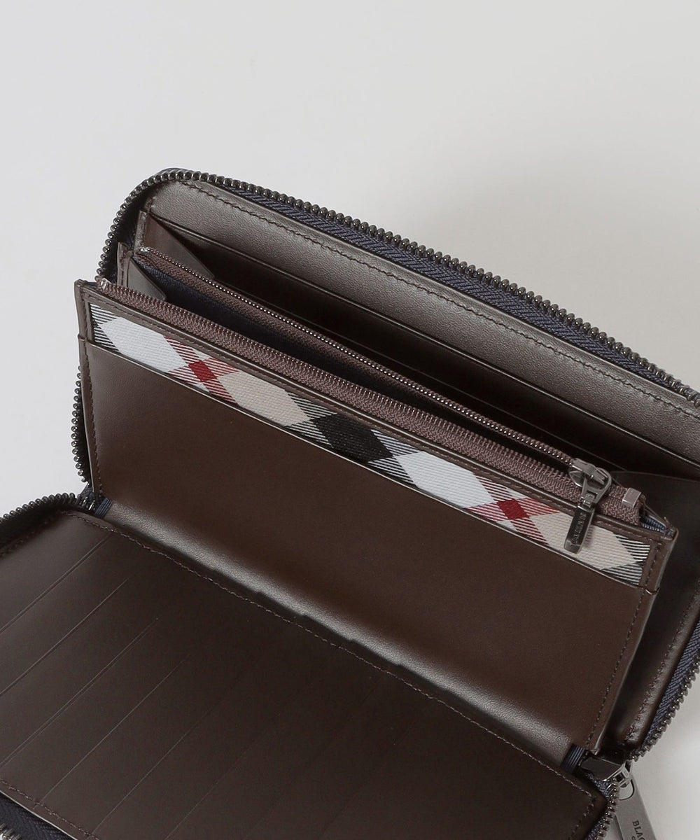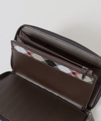 【クレストブリッジチェックを内側にあしらったラウンドジップウォレット】