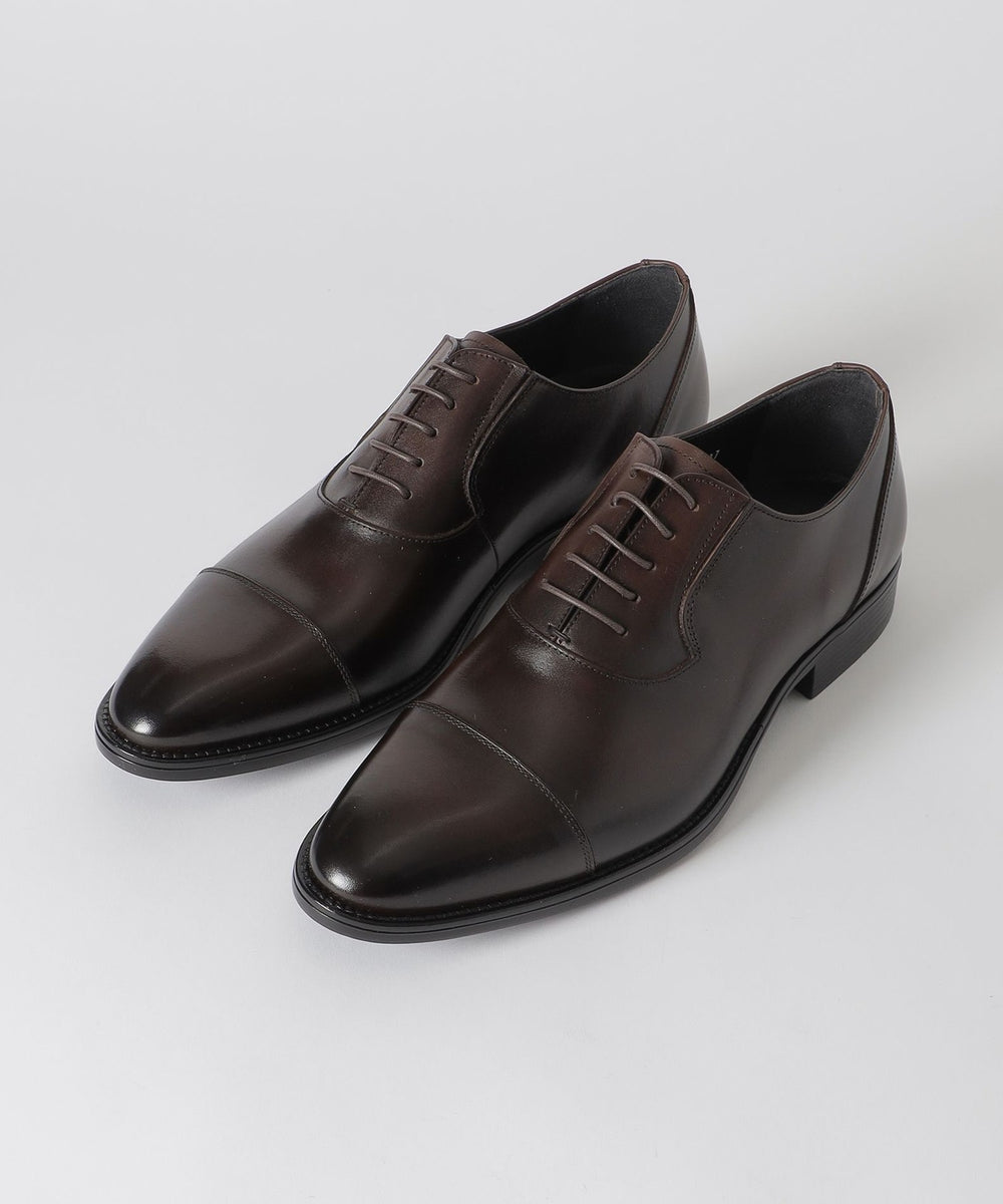 シンプルなデザインで、カジュアルからビジネスまでシーンを選ばずに活躍します。アンティーク加工を施す事で独特な色目に仕上げた高級感を感じるドレスシューズです。甲部分の両側にゴム素材を使用しているため、着脱のしやすさが特徴です。インソールには箔押しブランドロゴをあしらっています。