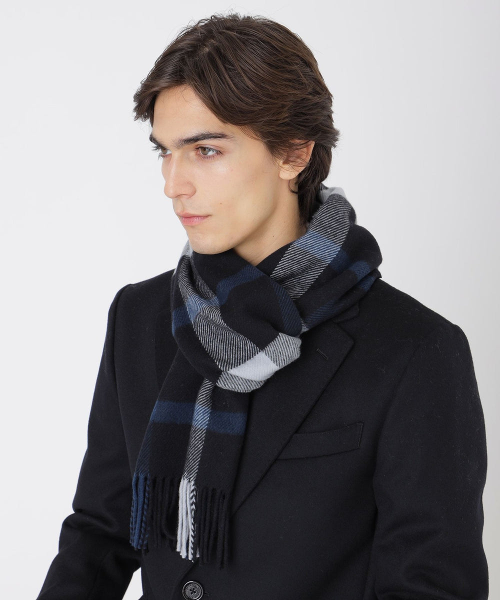 スタイリングのアクセントとなる鮮やかな配色使いのクレストブリッジチェック柄マフラーです。ギフトにも最適です。