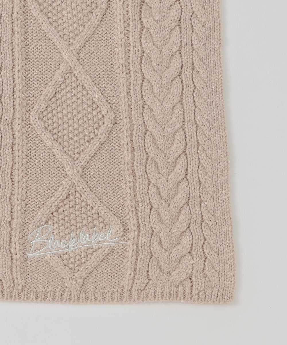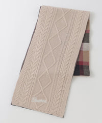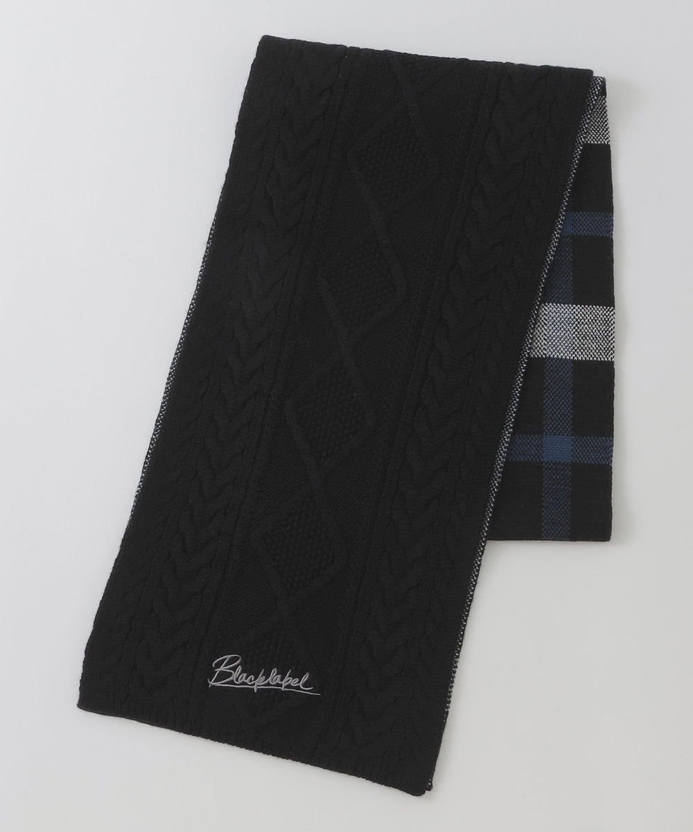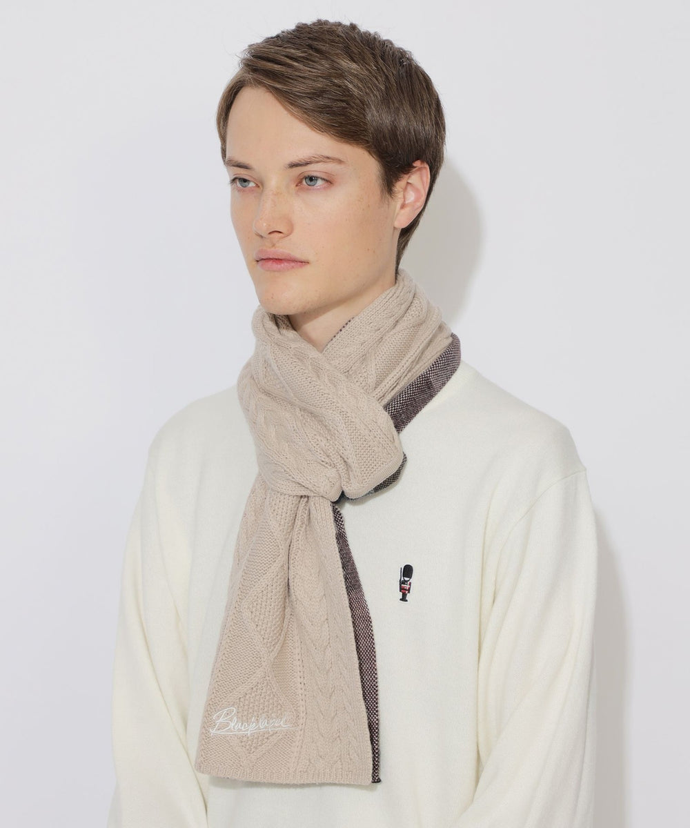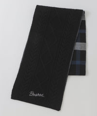 【クレストブリッジチェック柄とケーブル柄をドッキングしたニットマフラー】