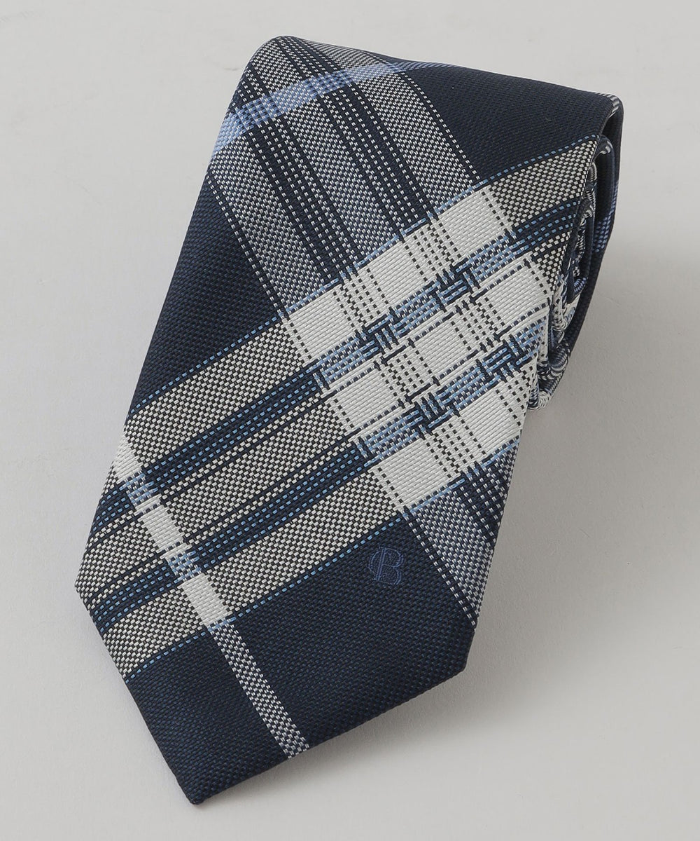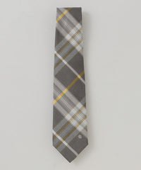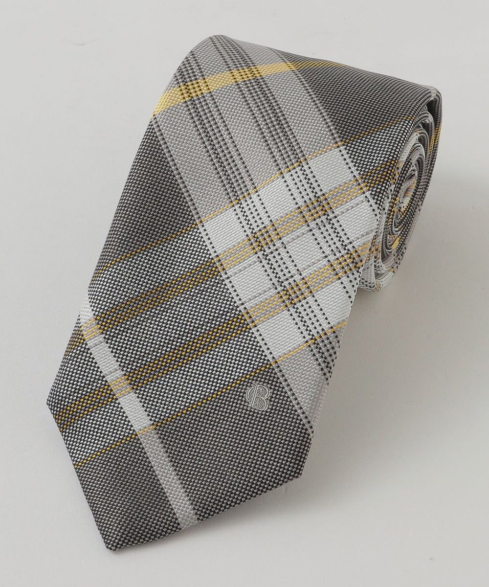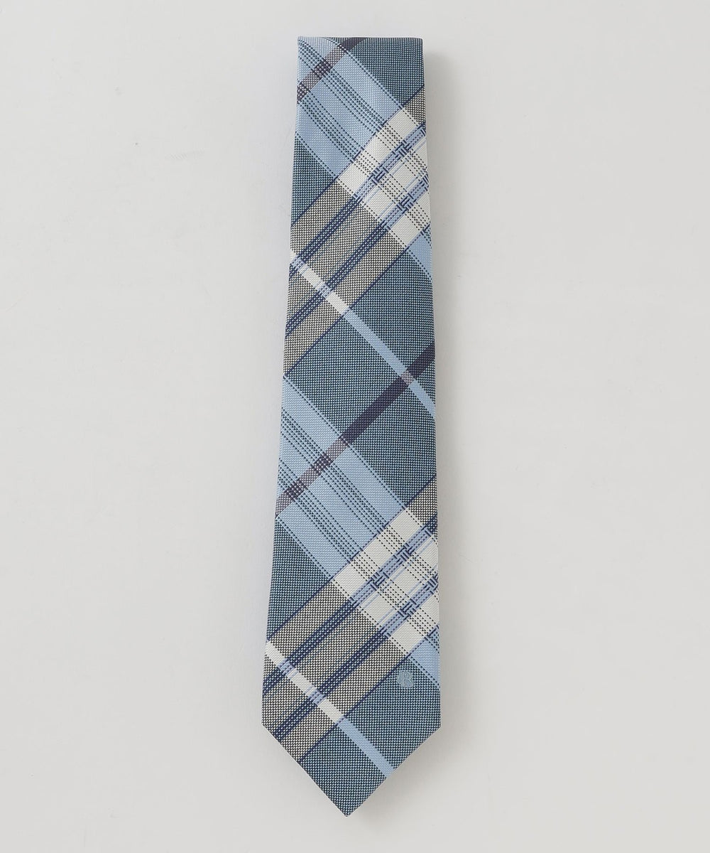 シルク100%を使用したチェックタイ。バスケット組織にカラーペーンを配した華やかなチェック柄です。裏地にはジャカードで表現したブランドロゴを配置し、細部までこだわった逸品です。