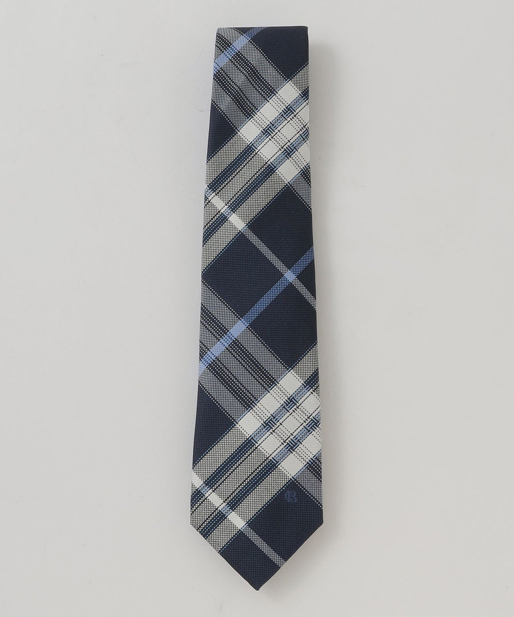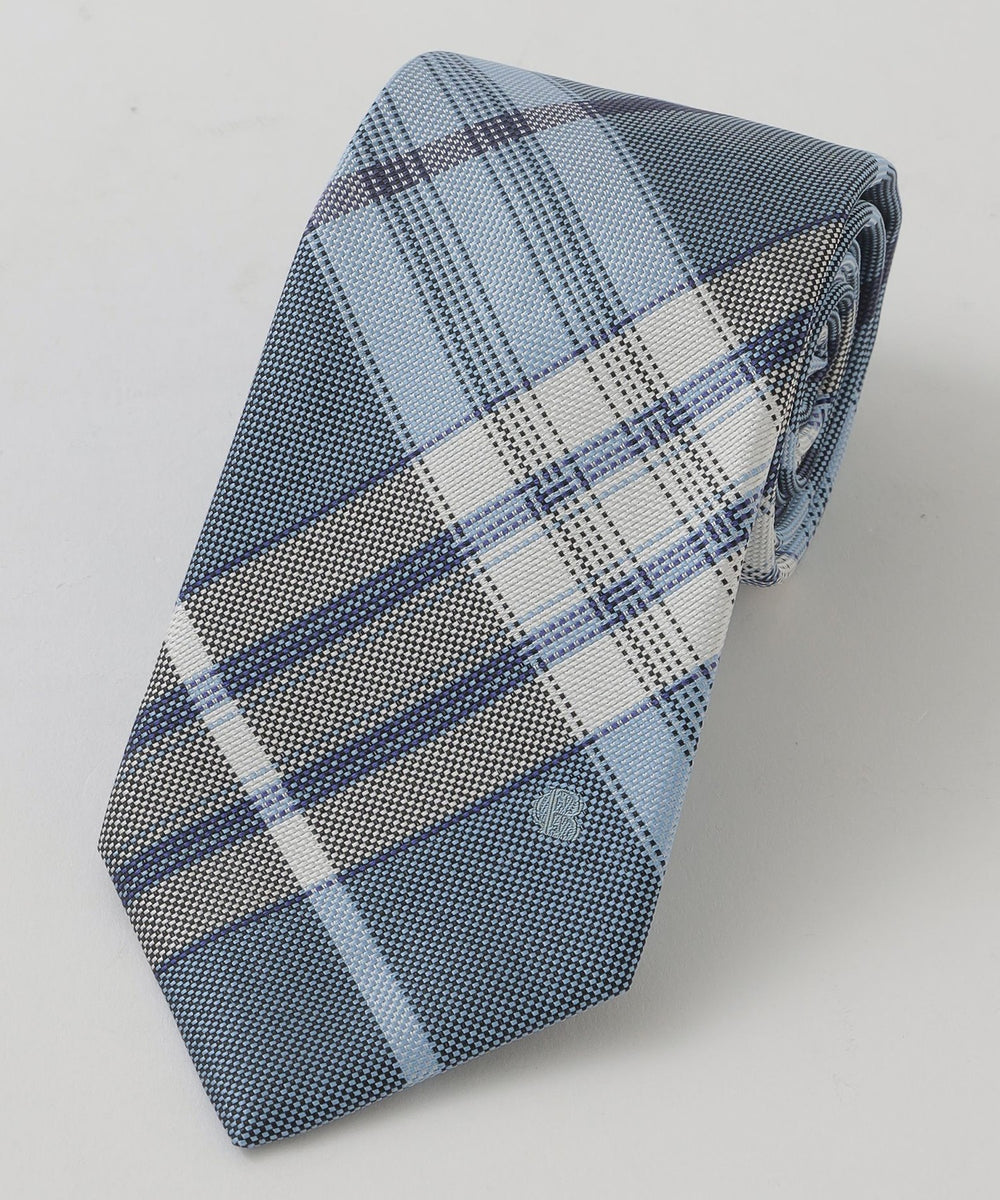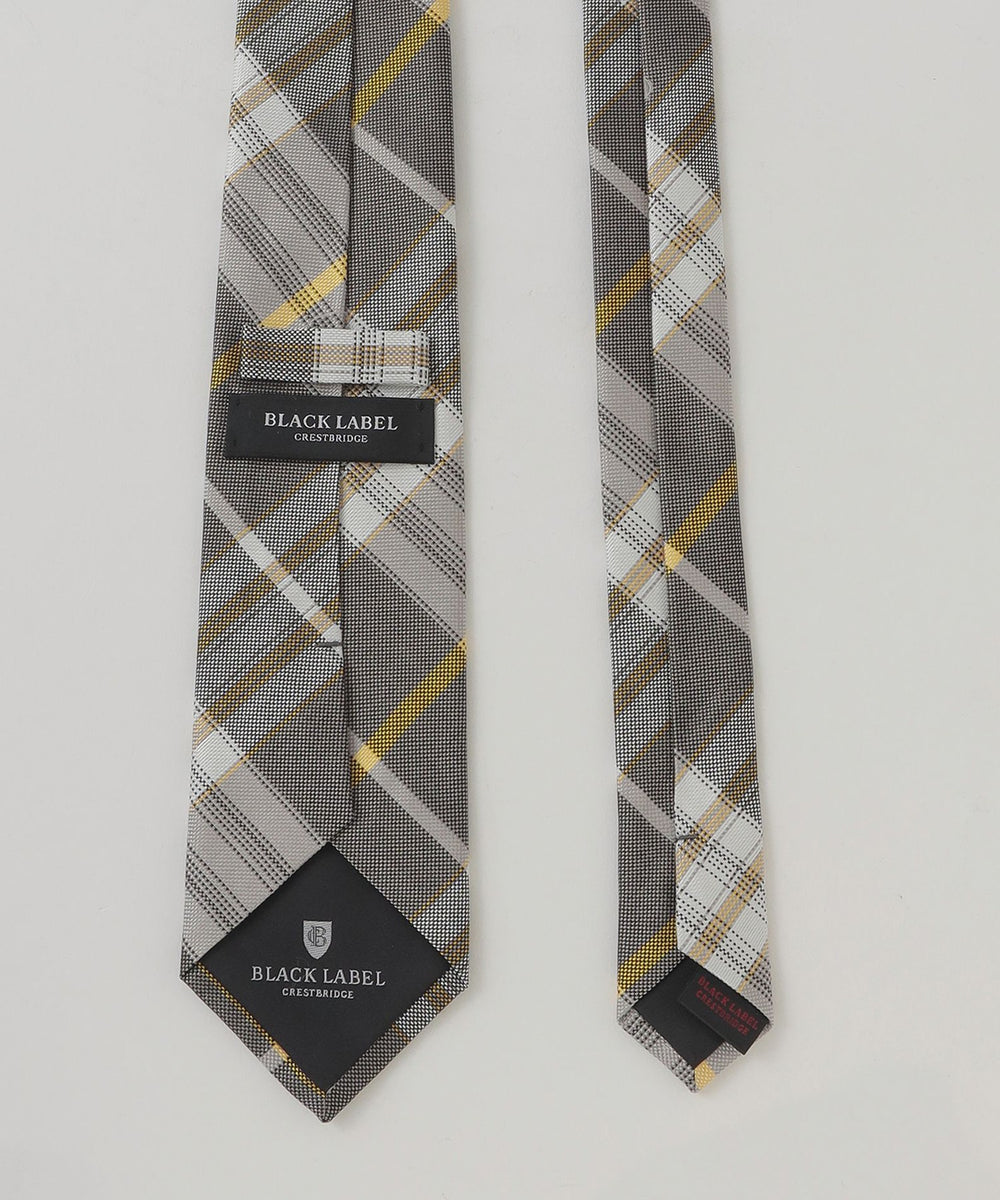 シルク100%を使用したチェックタイ。バスケット組織にカラーペーンを配した華やかなチェック柄です。裏地にはジャカードで表現したブランドロゴを配置し、細部までこだわった逸品です。