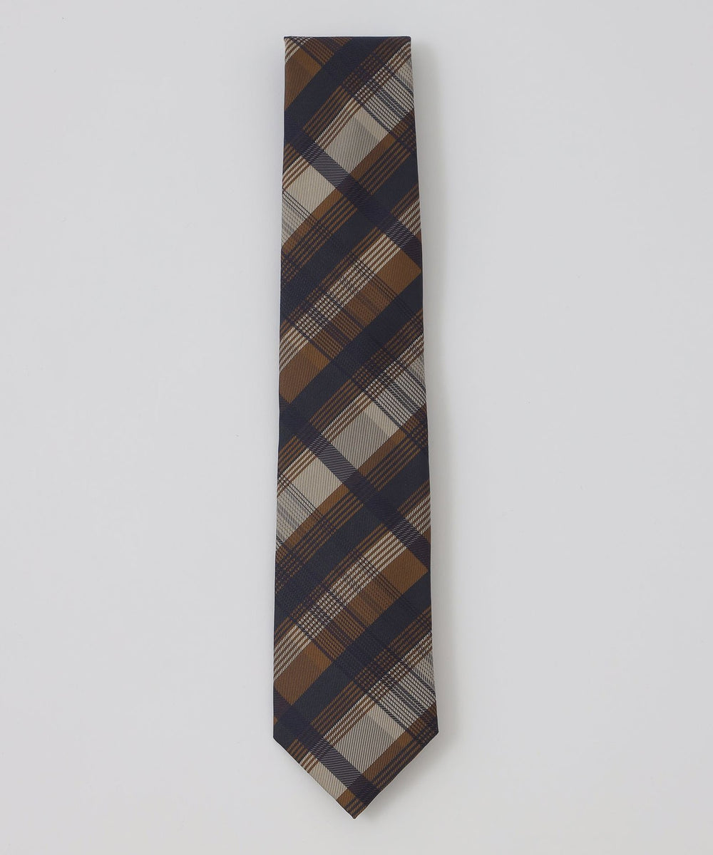 シルク100%を使用したチェックタイ。落ち着いた配色の為コーディネートに取り入れやすいデザインです。着用する方を選ばないデザインの為、ギフトにもオススメです。インポート素材(イタリア)ならではの美しい光沢が特徴的なネクタイです。裏地にはジャカードで表現したブランドロゴを配置し、細部までこだわった逸品です。