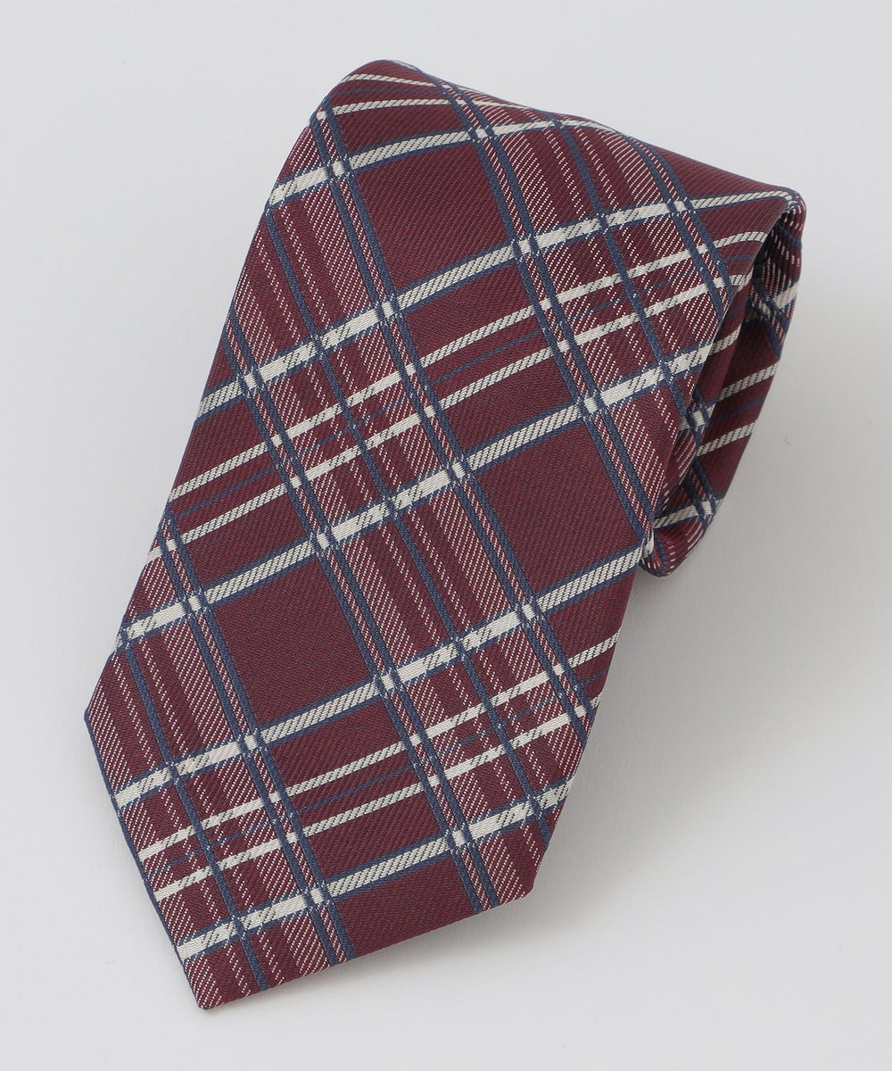 シルク100%を使用したチェックタイ。深みのある配色に鮮やかなカラーペーンを配した華やかなチェック柄でVゾーンにアクセントを与えます。インポート素材(イタリア)ならではの美しい光沢が特徴的なネクタイです。裏地にはジャカードで表現したブランドロゴを配置し、細部までこだわった逸品です。