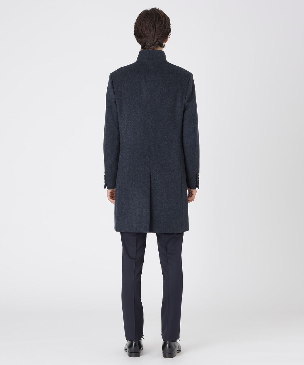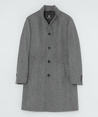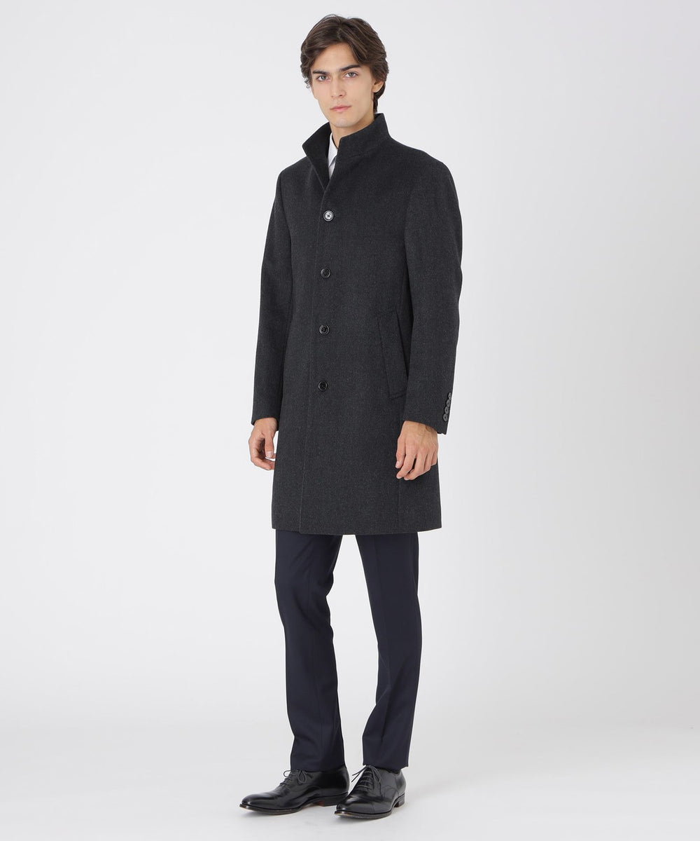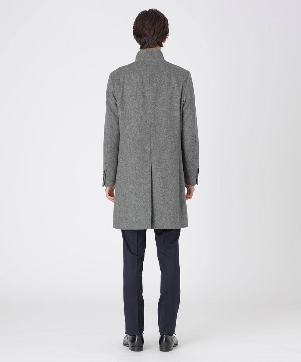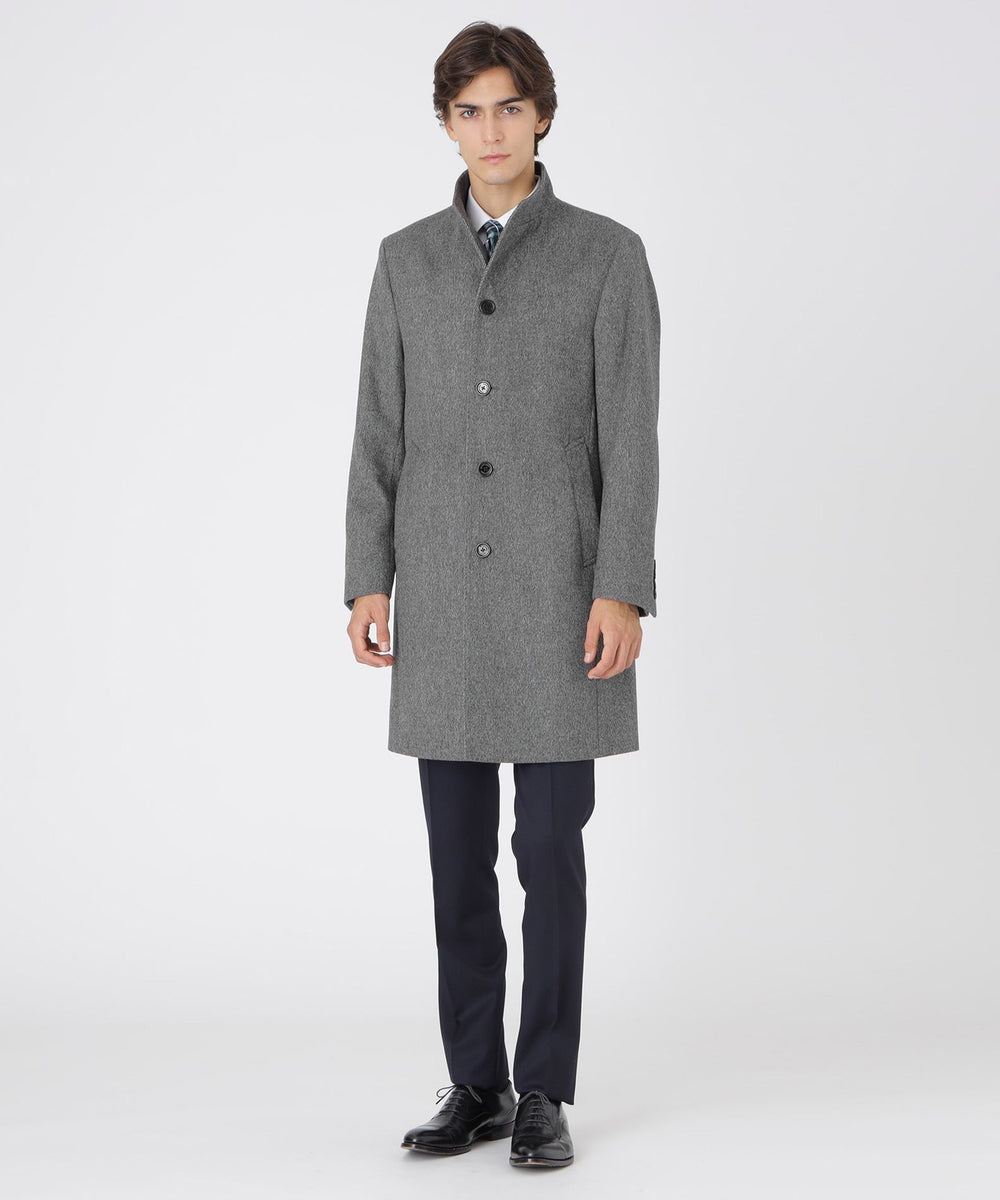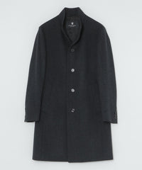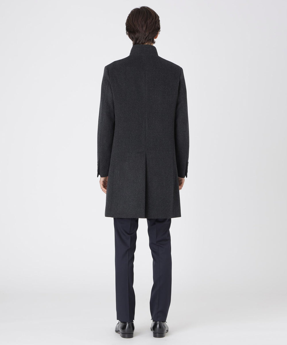 ドレッシーな雰囲気のスタンドカラーコート。襟周りのパターン設計にこだわることで構築的なカットを生み出しています。また、襟の内側の接ぎ目を減らすことで着用時のVゾーンを優雅に演出し、スーツやジャケットとのビジネスコーディネートから、ニットとのコーディネートまで着こなしの幅が広い1着です。