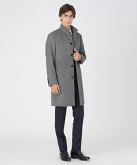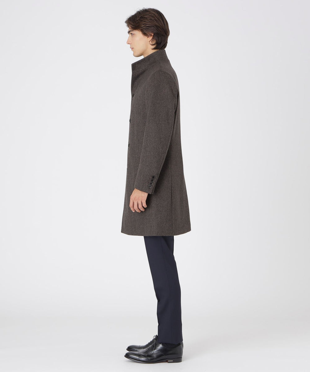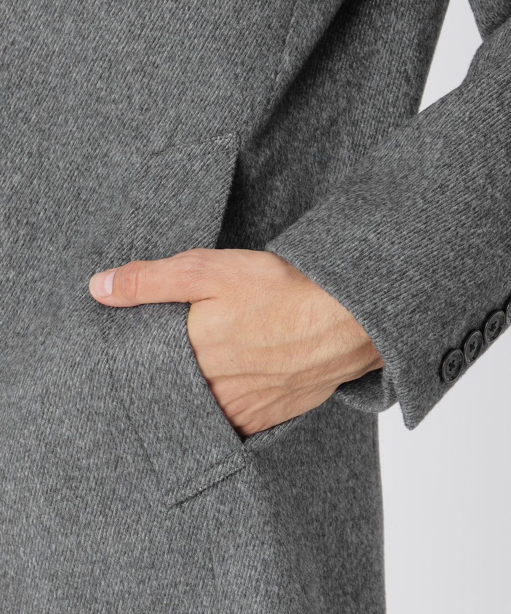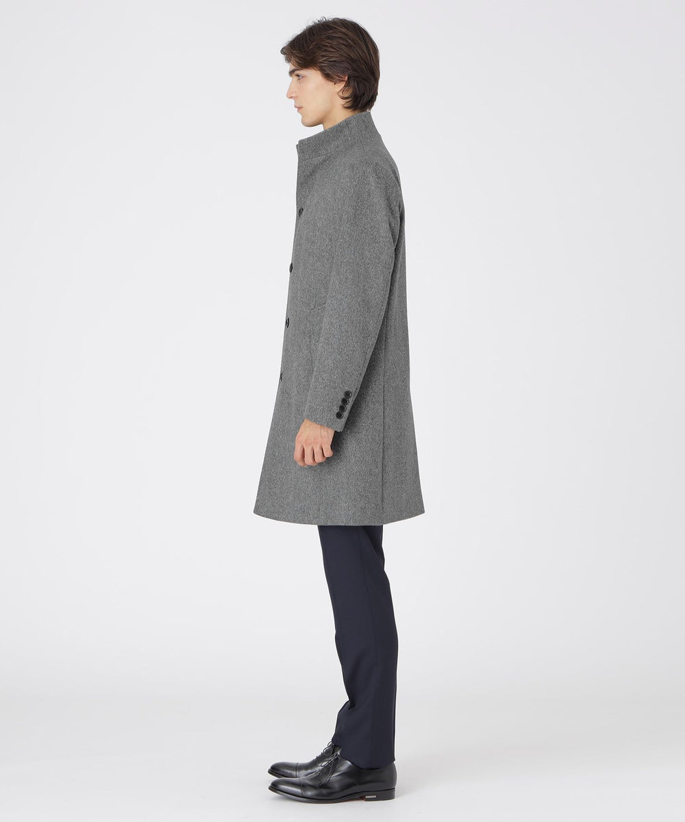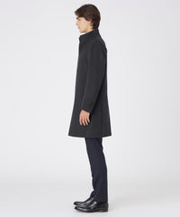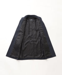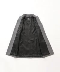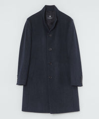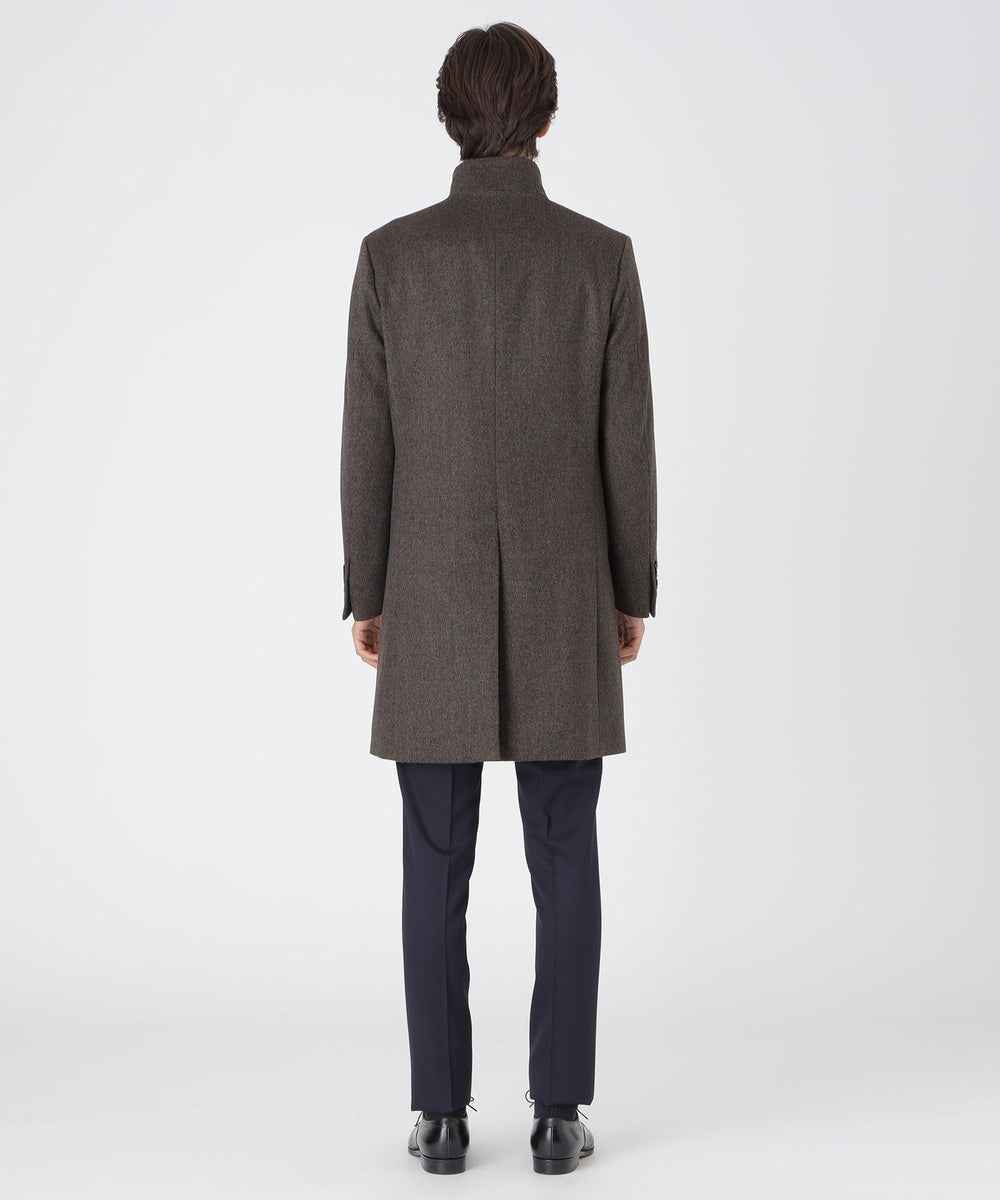 ドレッシーな雰囲気のスタンドカラーコート。襟周りのパターン設計にこだわることで構築的なカットを生み出しています。また、襟の内側の接ぎ目を減らすことで着用時のVゾーンを優雅に演出し、スーツやジャケットとのビジネスコーディネートから、ニットとのコーディネートまで着こなしの幅が広い1着です。