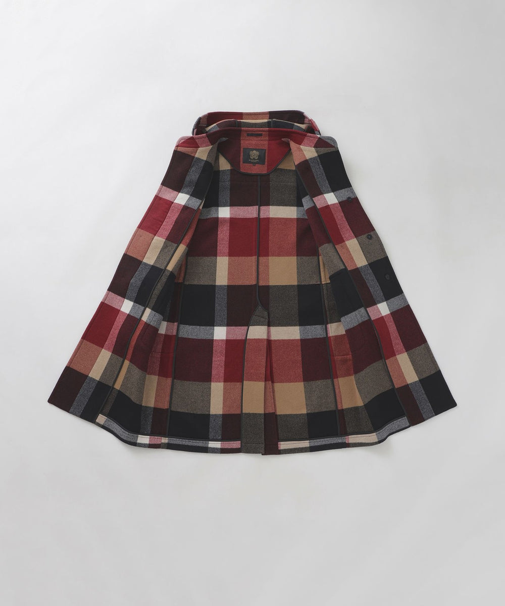 ブランド10周年を記念したダッフルコート。ブリティッシュアウターの代名詞ともいえるダッフルコートを、オーセンティックなデザインとアイコニックなクレストブリッジチェック柄で再構築。ロゴを刻印したオリジナルの水牛トグルボタンやレザーループを組み合わせ、存在感のあるディテールに仕上げました。袖裏を備え、着脱のしやすさにも配慮しています。またジャケットの上からでも羽織れるサイズ感の為、ビジネスからカジュアルまで幅広いコーディネートで使用いただけます。