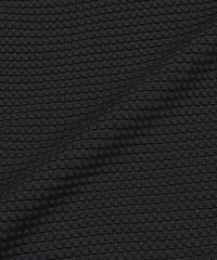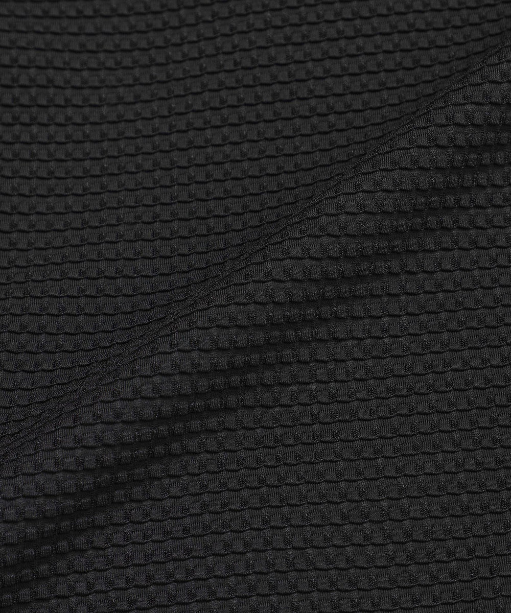 素材には凹凸のある表面感が特徴のタック編みトリコットを使用。立体的な組織にすることで肌への接地面積を少なくし、肌離れの良いさらりとした着心地が続きます。またメッシュ調の組織のため通気性が良く、しわになりづらいのも特徴です。春先から暑い夏の季節でも快適に過ごせる一着です。