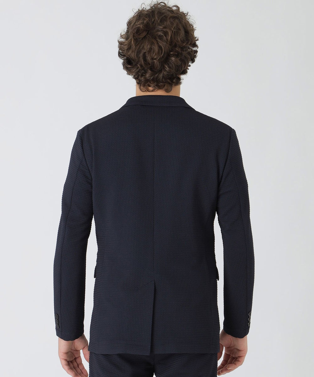 袖裏や肩パット、固い芯地を使用しないことで、軽さと快適な着心地を併せ持ったアンコン仕様ジャケット。カジュアルな素材感ながらベーシックなデザインの為、幅広いシーンでの着用が可能です。マシンウォッシャブル対応のイージーケアアイテム。