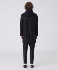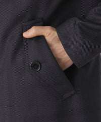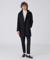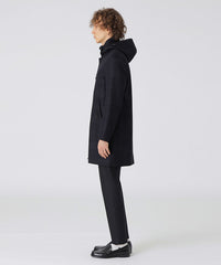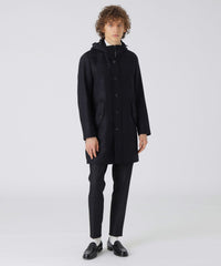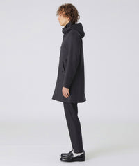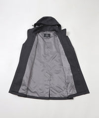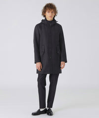 スーツやセットアップにも合わせられる都会的なコートとして開発されたこのアウターは、フードの着脱によってスタンドコートとしても使用可能。ビジネス・カジュアル問わず幅広いコーディネートでの対応が可能です。裏地にはブランドロゴをジャカードにて表現した素材を使用し、付加価値の高い一着に仕上げています。