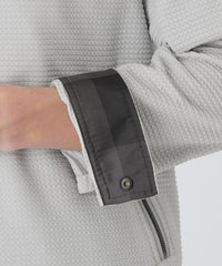 素材には凹凸のある表面感が特徴のタック編みトリコットを使用。立体的な組織にすることで肌への接地面積を少なくし、肌離れの良いさらりとした着心地が続きます。またメッシュ調の組織のため通気性が良いのも特徴です。春先から暑い夏の季節でも快適に過ごせる一着です。