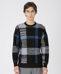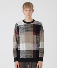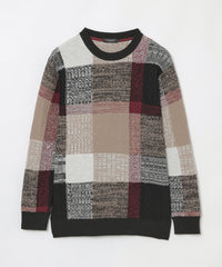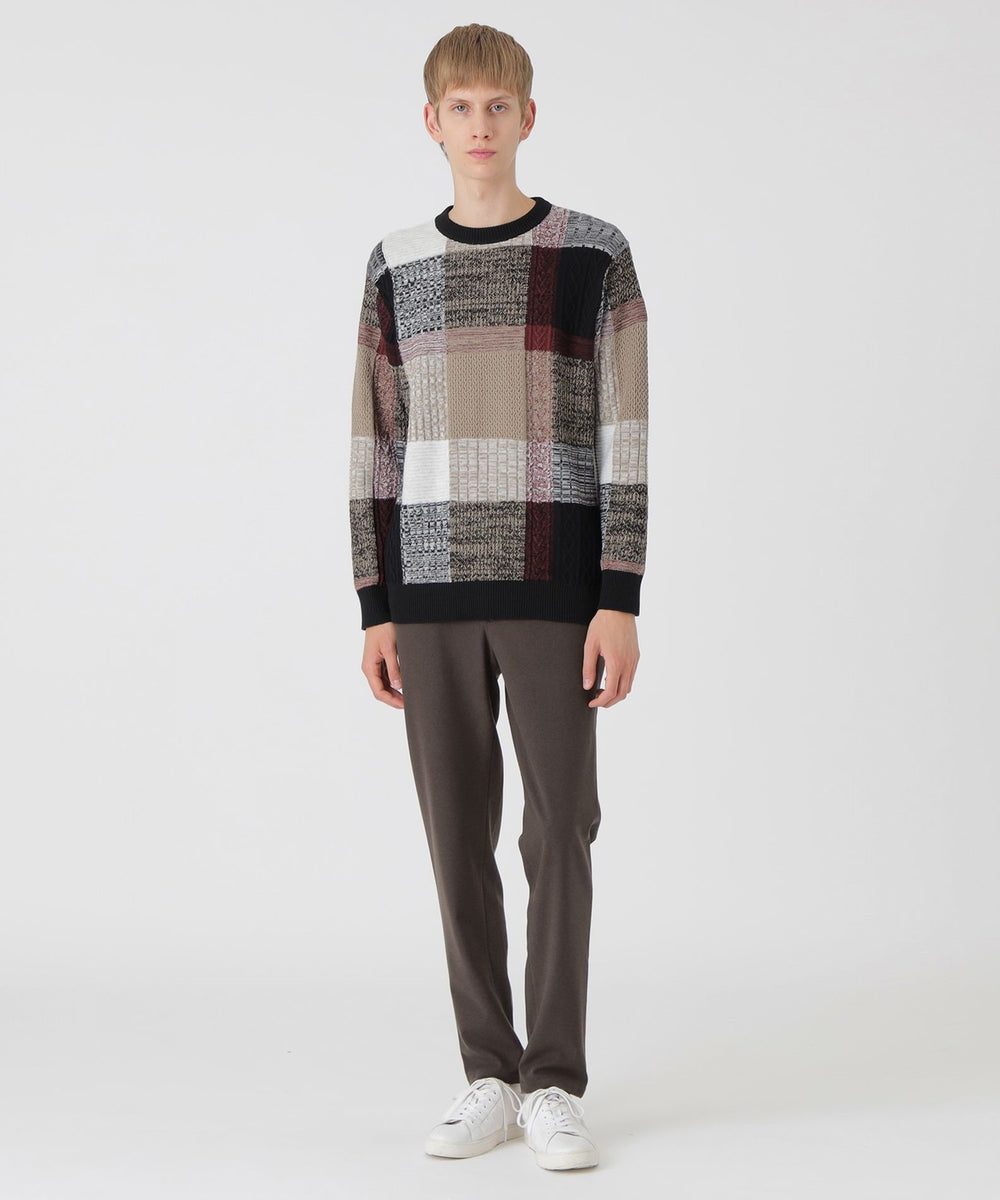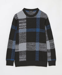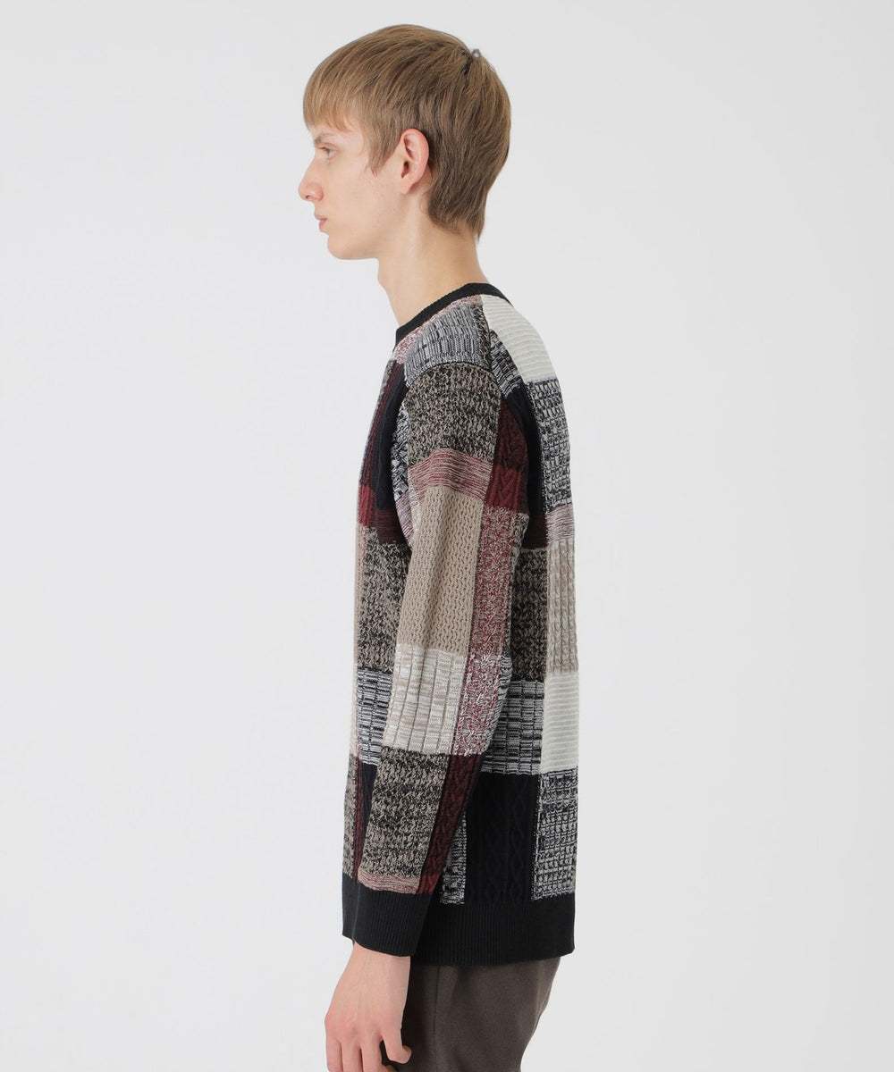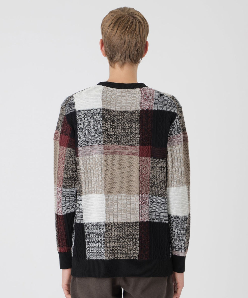 【異なる編み柄をミックスさせたアイコンチェックニット】