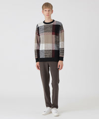 8種類の異なる編み組織を組み合わせ、立体感のあるクレストブリッジチェック柄を表現したニット。シンプルなクルーネック仕様で、シンプルながらも編地の表情が際立つデザインがポイントです。軽やかな着用感ながら、しっかりとした肉感で秋冬から春先までロングシーズンで対応可能なアイテムです。ブラックレーベルらしい上品さと遊び心を兼ね備えた、デザイン性の高い一着です。