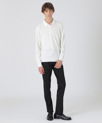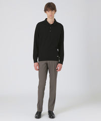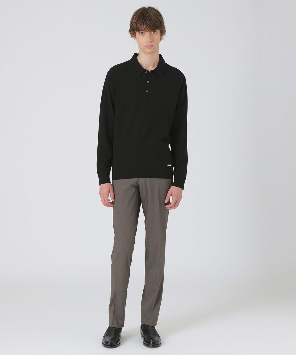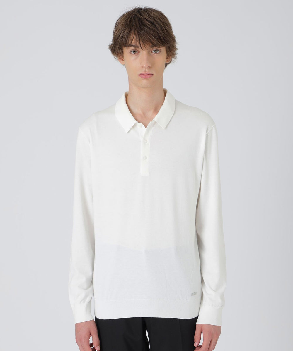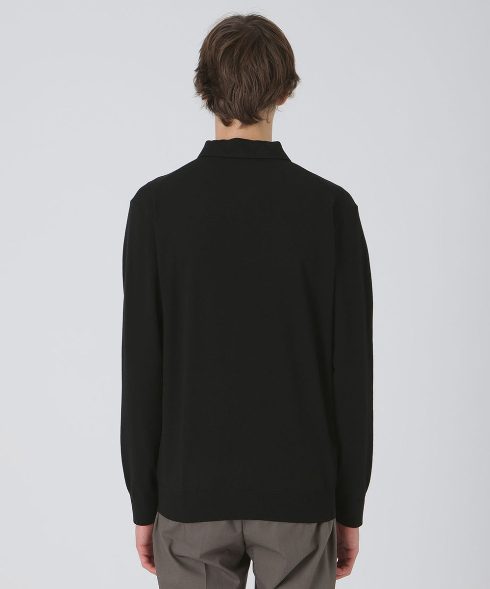 【柔らかで上品見えのする長袖ニットポロシャツ】