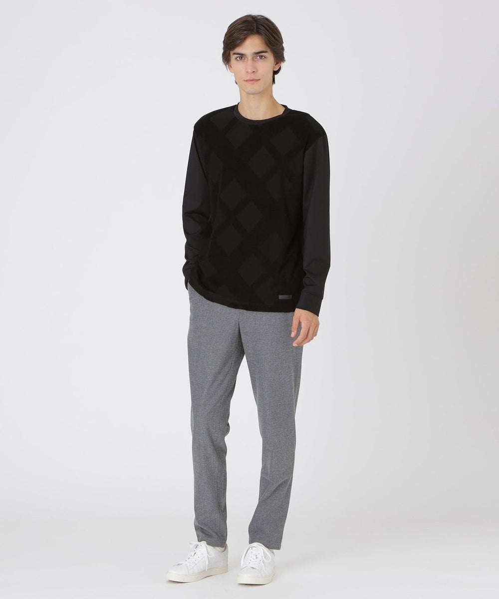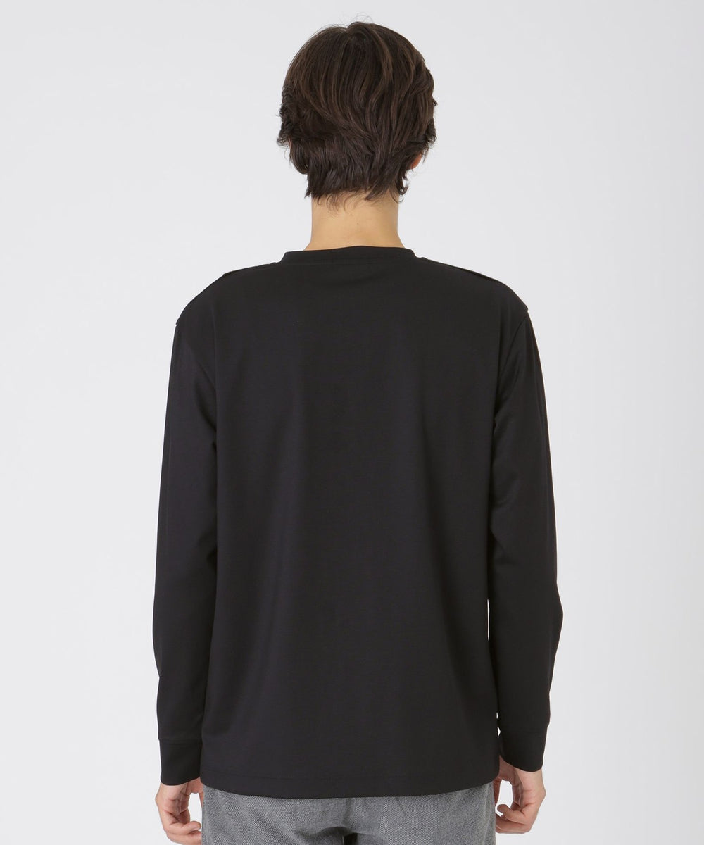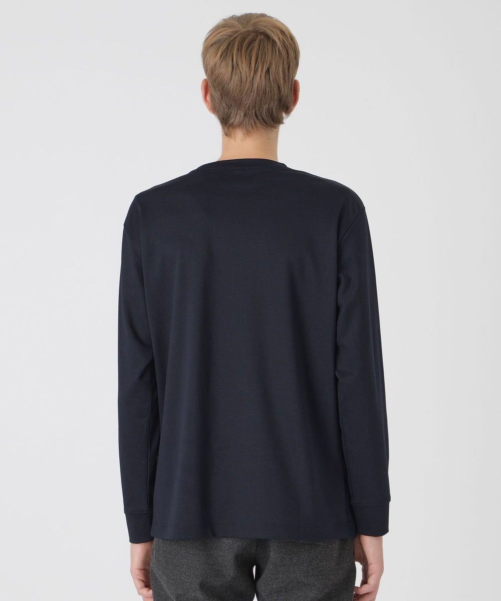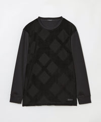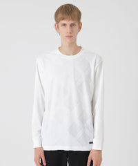 フロントにシャドーチェックをあしらった長袖カットソー。パイルによる凹凸のみでチェック柄を表現する事で、程良い存在感に仕上げています。コーディネートしやすく、一枚でも十分サマになる着回し力抜群の一着です。