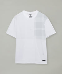 【チェック柄を部分的にあしらったパッチワークデザインのTシャツ】