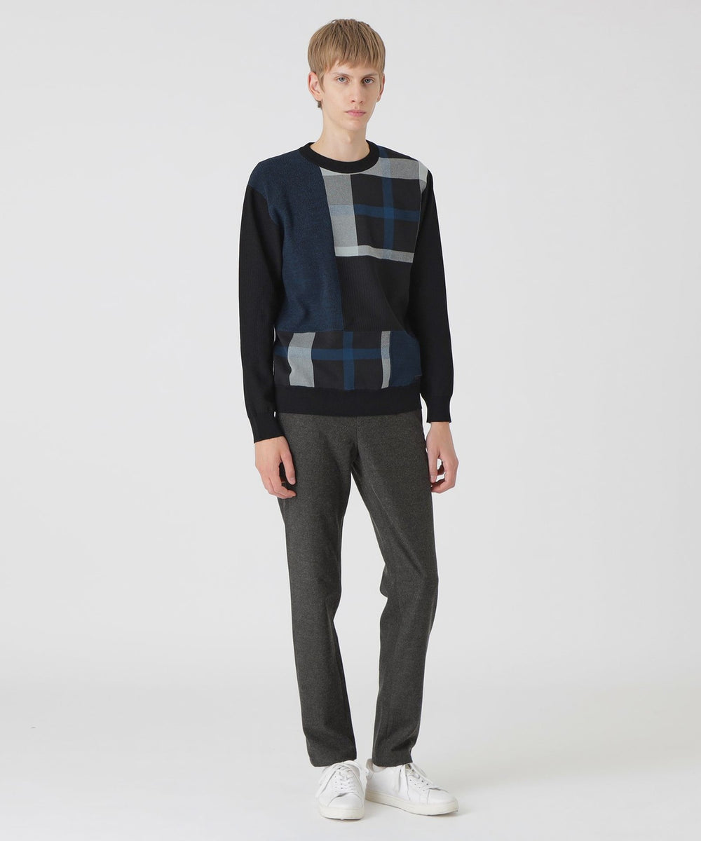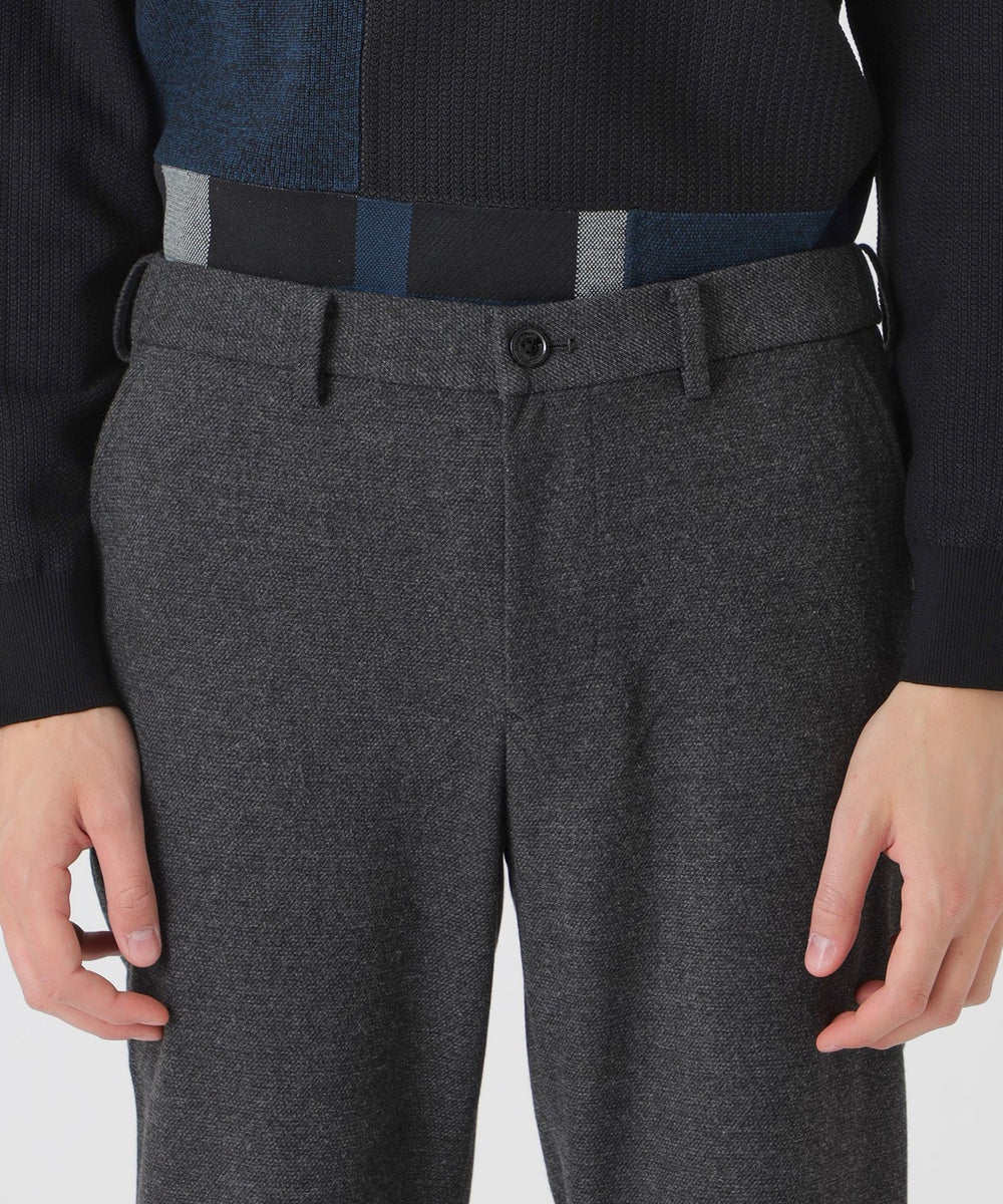 表地にはタテ方向、ヨコ方向それぞれにストレッチ性の高いウール調起毛ツイル素材を使用しています。優れたストレッチ性に加え、あたたかみのあるソフトな素材感が快適な履き心地を演出します。