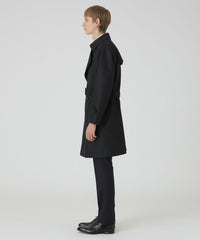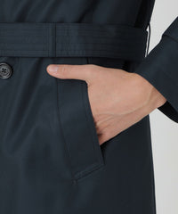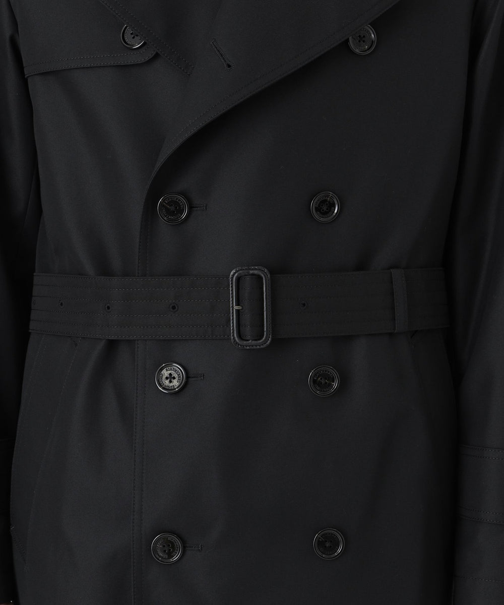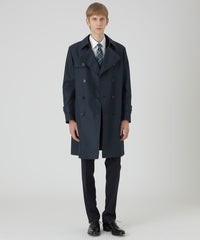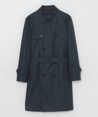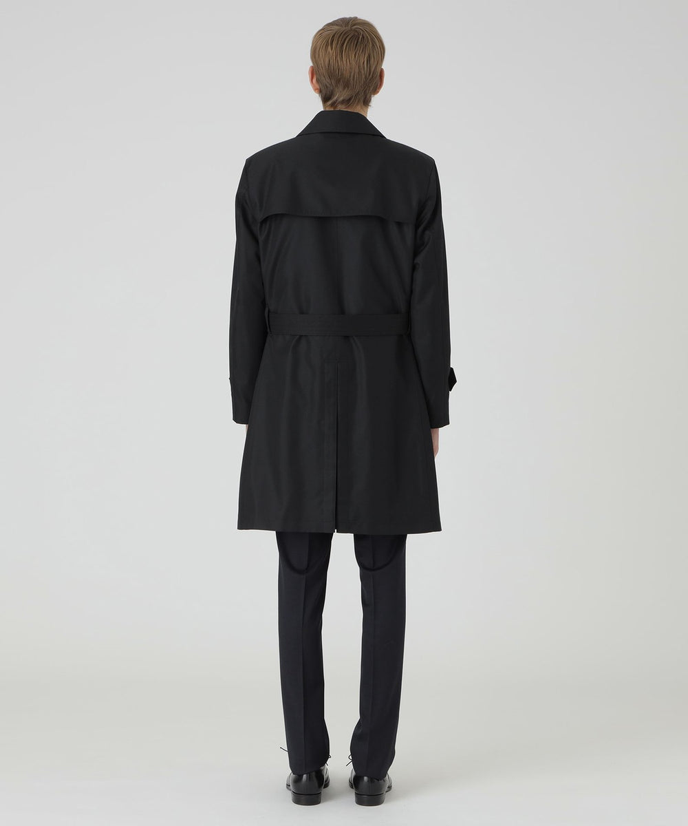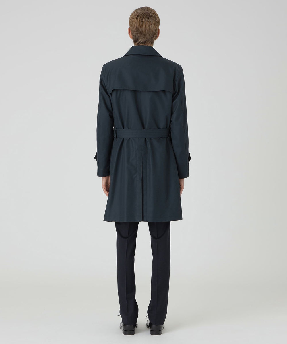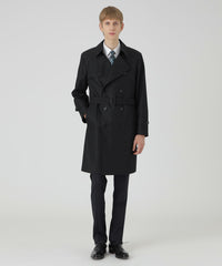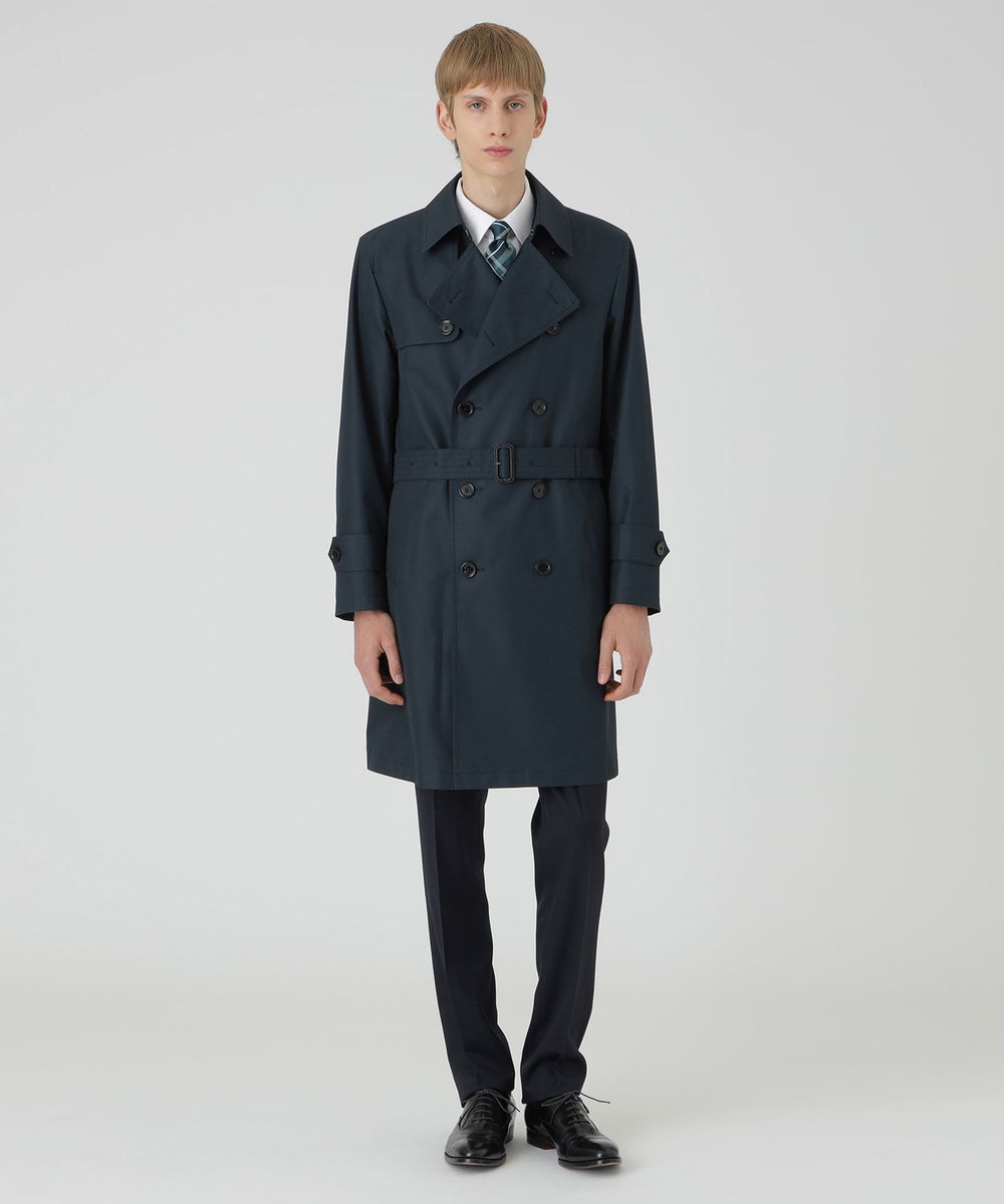 【上品な光沢と柔らかさを兼ね備えた、現代的ビジネス対応ダブルトレンチ】