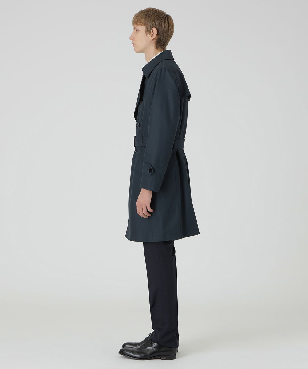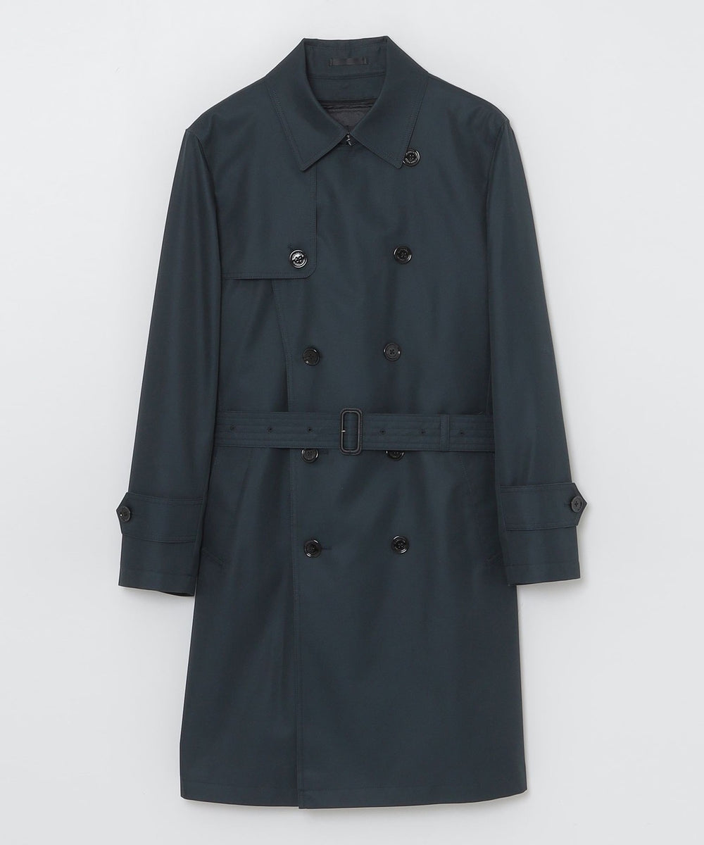 英国スタイルには欠かせない、クラシカルな雰囲気を演出するオーセンティックなダブルトレンチコートです。ブリティッシュスタイルには欠かせないオーセンティックなトレンチコートに現代的なアレンジを加え、ガンパッチ、ケープドバック仕様など本格的なディテールを残しつつ、現代のビジネスシーンに対応出来るよう、襟周りや肩まわりをすっきりとしたデザインに仕上げています。取り外し可能なライナー付きのデザインで春先まで着用できるアイテムです。