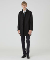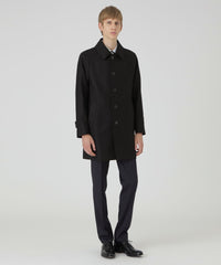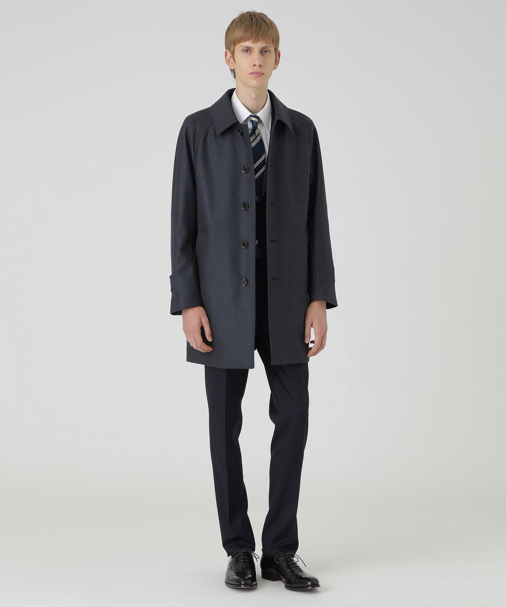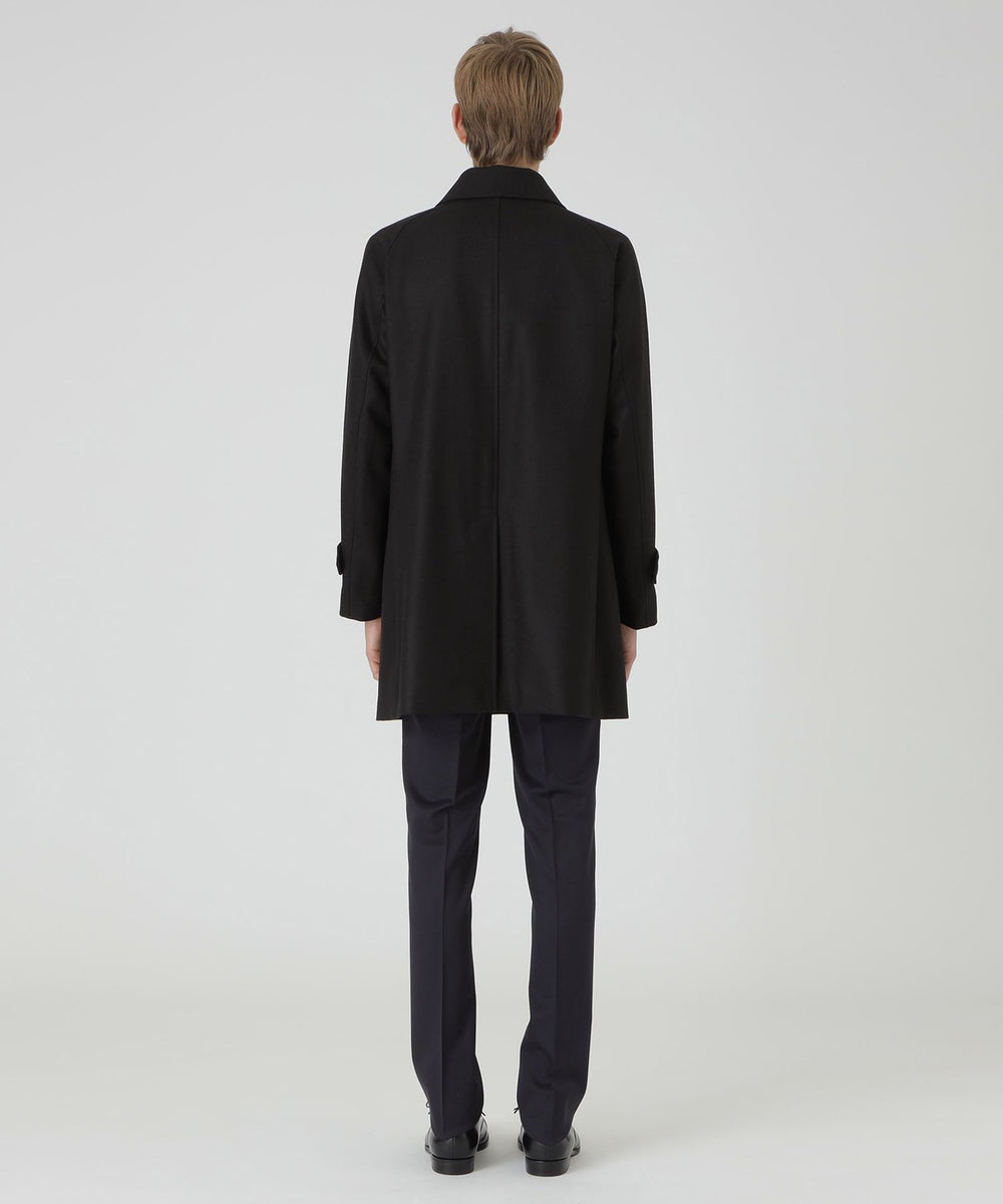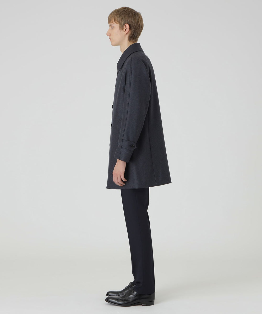 ジャケット感覚で羽織れるショート丈のステンカラーコート。ラグランスリーブや袖口のタブディテール等のオーセンティックなデザインをベースに、ウエストシェイプや肩まわりにゆとりを持たせたシルエットで、リラックスした雰囲気に仕上げています。ビジネスからカジュアルまで幅広く対応する万能な一着です。