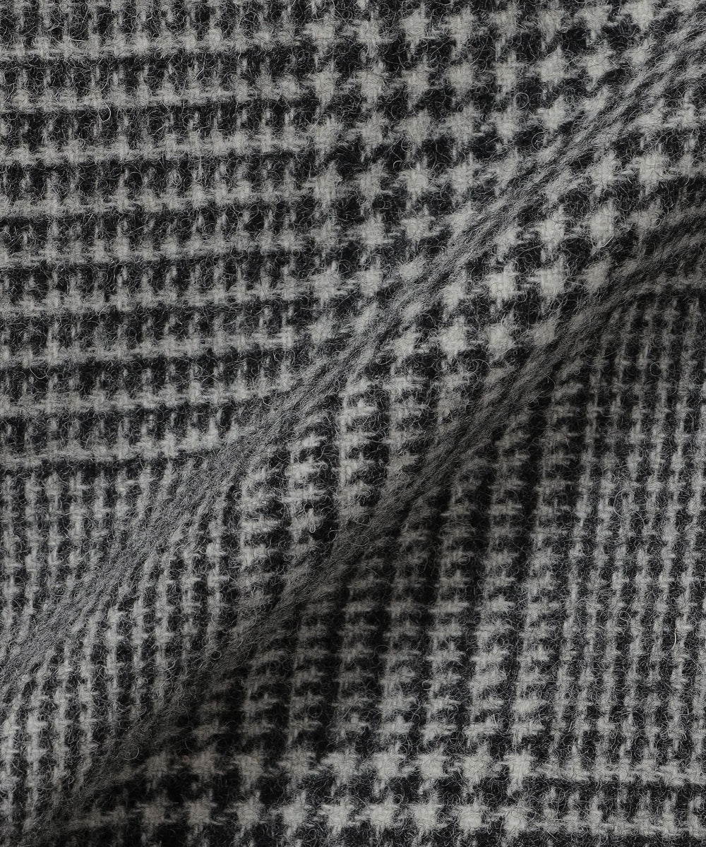 表地には、英国羊毛を使用したグレンチェック柄ブリティッシュツイード素材を使用。日本最大の毛織物産地として知られる尾州産地で織り上げられ、奥行きのある表情と高級感を際立たせています。英国羊毛特有のドライなタッチ感とクリンプによるやさしい膨らみ感、高級感のある立体的な素材感が特徴で、クラシックでありながら洗練された存在感を放ちます。
