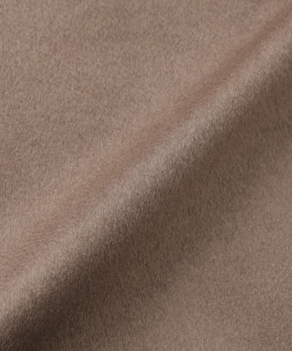 素材はイタリアの高級服地メーカー「COLOMBO」の最高級ピュアカシミヤ(100%カシミヤ)を使用。毛足が長く高級感のある素材です。カシミヤならではの上質な光沢感と滑らかな肌触りが特徴です。