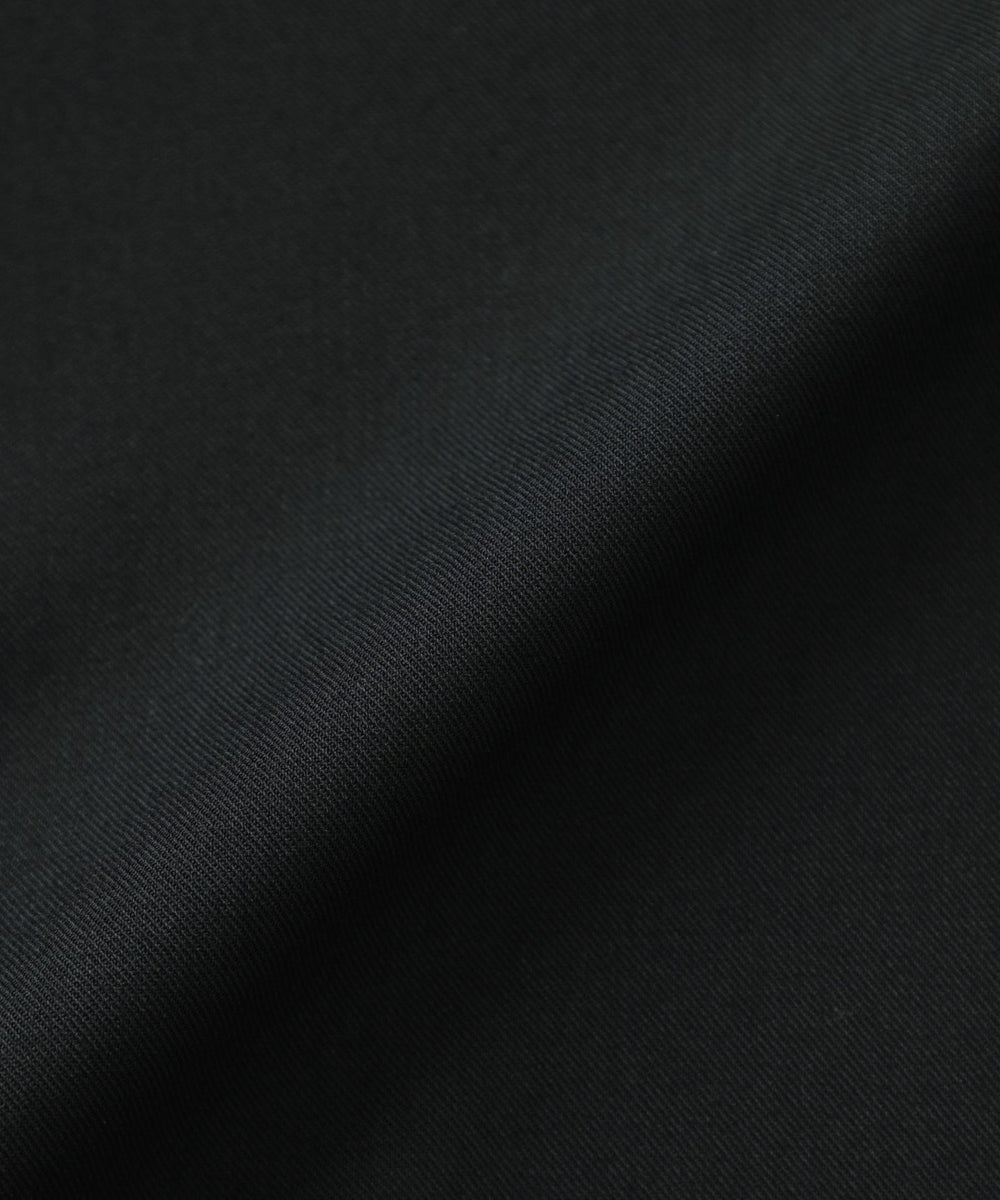 素材には、フランスの高級生地メーカーCARREMAN社の生地を使用。ポリエステル・レーヨンに羊毛を混紡した複合素材。通常のポリエステル・レーヨン素材に比べ、糸の繊維長が長く、合繊繊維でありながらウールのようなナチュラルな風合いと仕立て映えの良さが特徴です。更にウォッシャブル性・防シワ性・適度なストレッチ性を保持した機能性も併せ持った素材です。