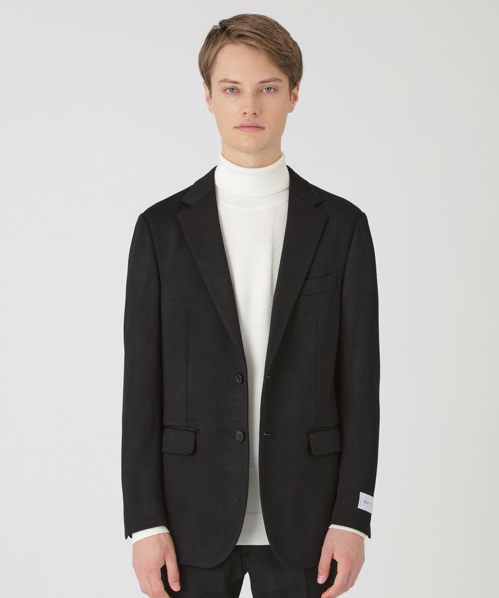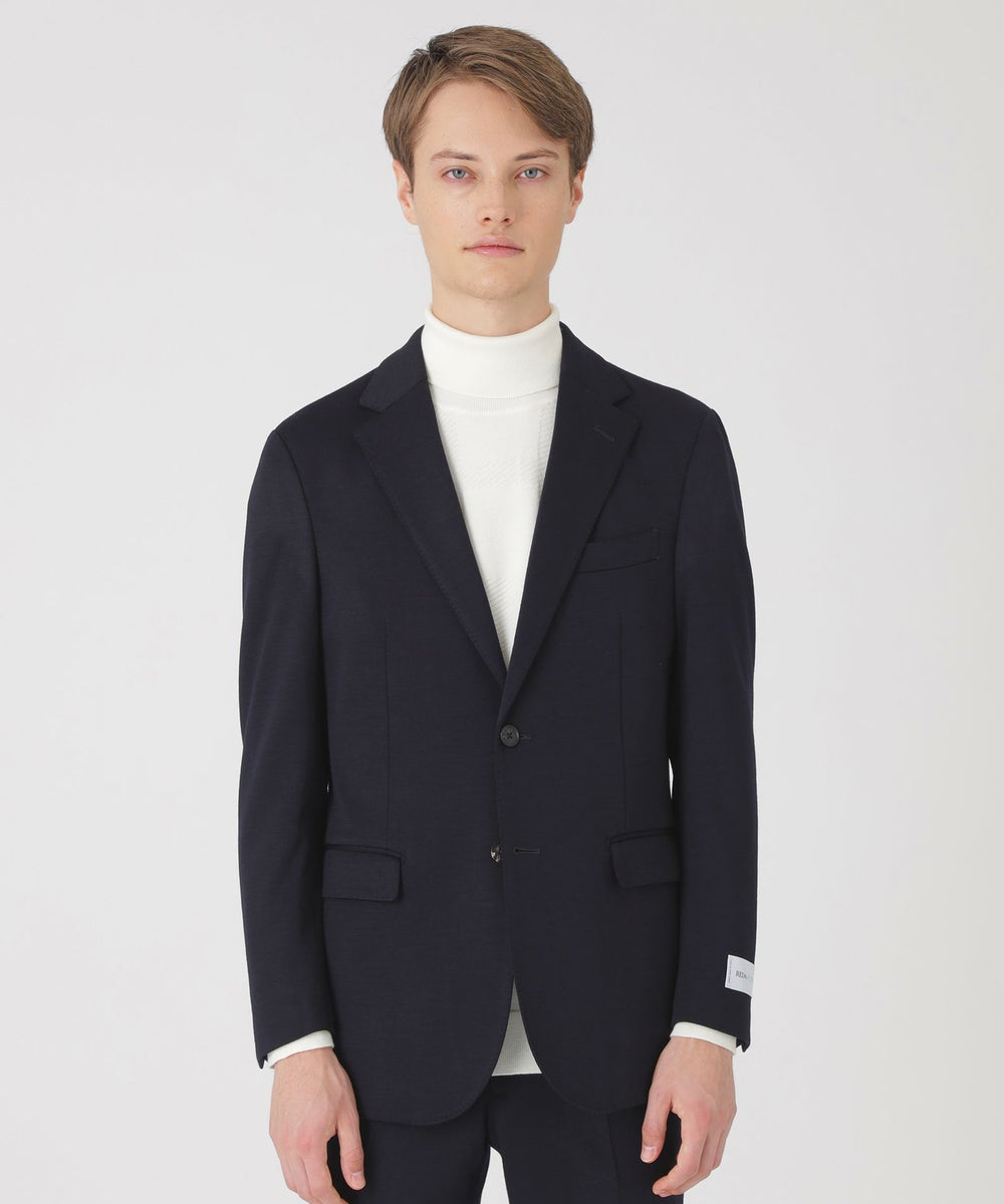 素材には、イタリアの高級服地メーカーREDA社のREDA ACTIVEウールジャージーを使用。羊毛100%の素材で、非常に美しい光沢と滑らかな風合いが特徴です。ジャージー素材を使用しているため、ビジネスシーンに限らず、様々なシーンで快適にご着用いただける一着となっています。ストレッチ性の高さに加え軽量な為、ストレスフリーでの着用が可能です。同素材にてトラウザーズも展開しており、セットアップとしてもご着用頂けます。