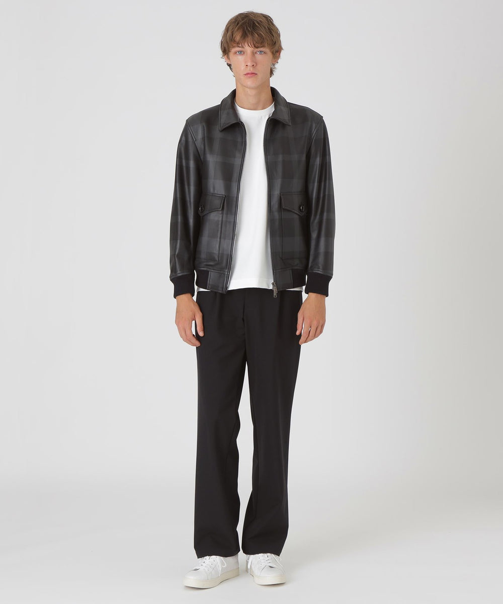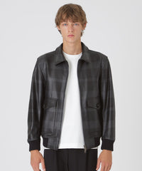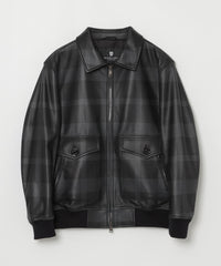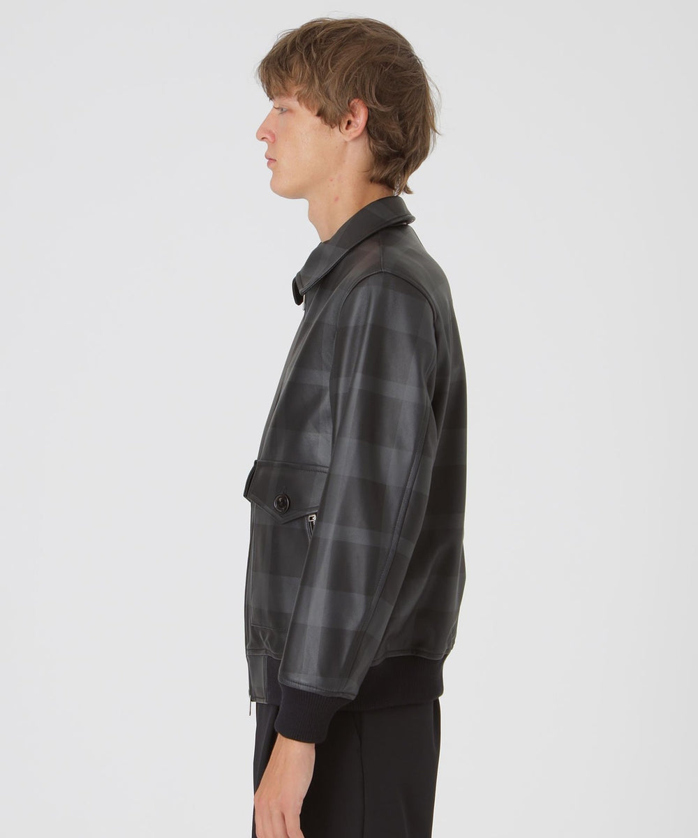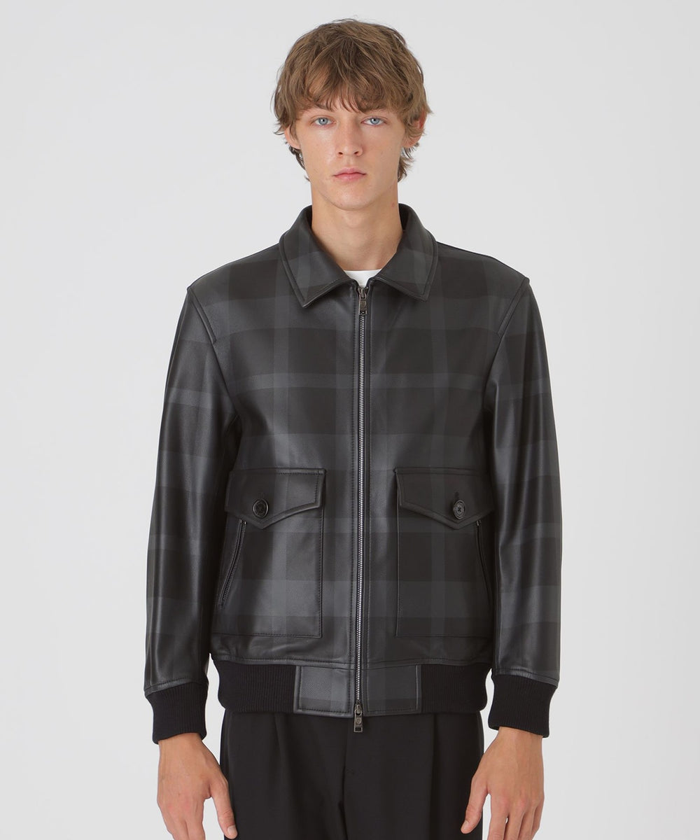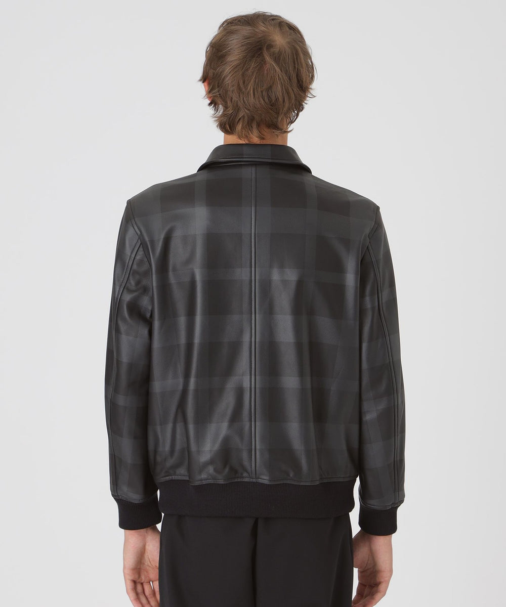 【アイコニックなチェック柄をプリントしたレザーフライトジャケット 】