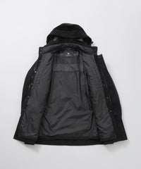 フード取り外し可能な2WAY仕様の軽量ショート丈アウターと、ダウンを内蔵したインナーキルティングジャケットを組み合わせた2in1仕様のアウターウェアです。