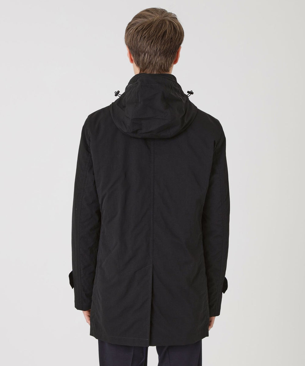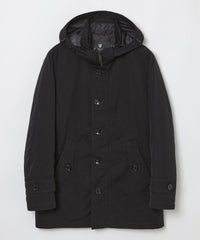 素材には特殊な染色技術と加工を施すことによって、通常の黒色よりも深みのある色合いを実現した「BLACK of BLACKs」ナイロンタッサー素材を使用。「すべての黒の中のまさにひとつだけの黒」をコンセプトに開発されたこの素材は、品格と存在感を放つ「真の黒」を体験できる唯一無二の素材です。表地だけでなく細部までも黒に拘った、都会的なデザインのアウターに花を添える「究極の黒」アウターです。