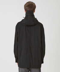 表地には、高密度ナイロンツイルに特殊な加工を施した素材を使用。特殊な工程によって生まれる自然なシワ感と陰影が、深みのある光沢と立体的な表情を作り出します。無骨なディテールを包み込む艶が、武骨さに洗練された上品さとプレミアム感を与え、唯一無二の存在感を纏う特別な一着です。
