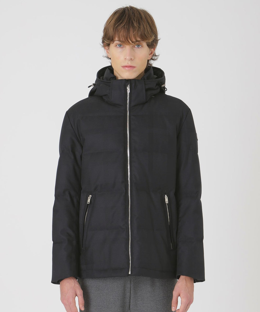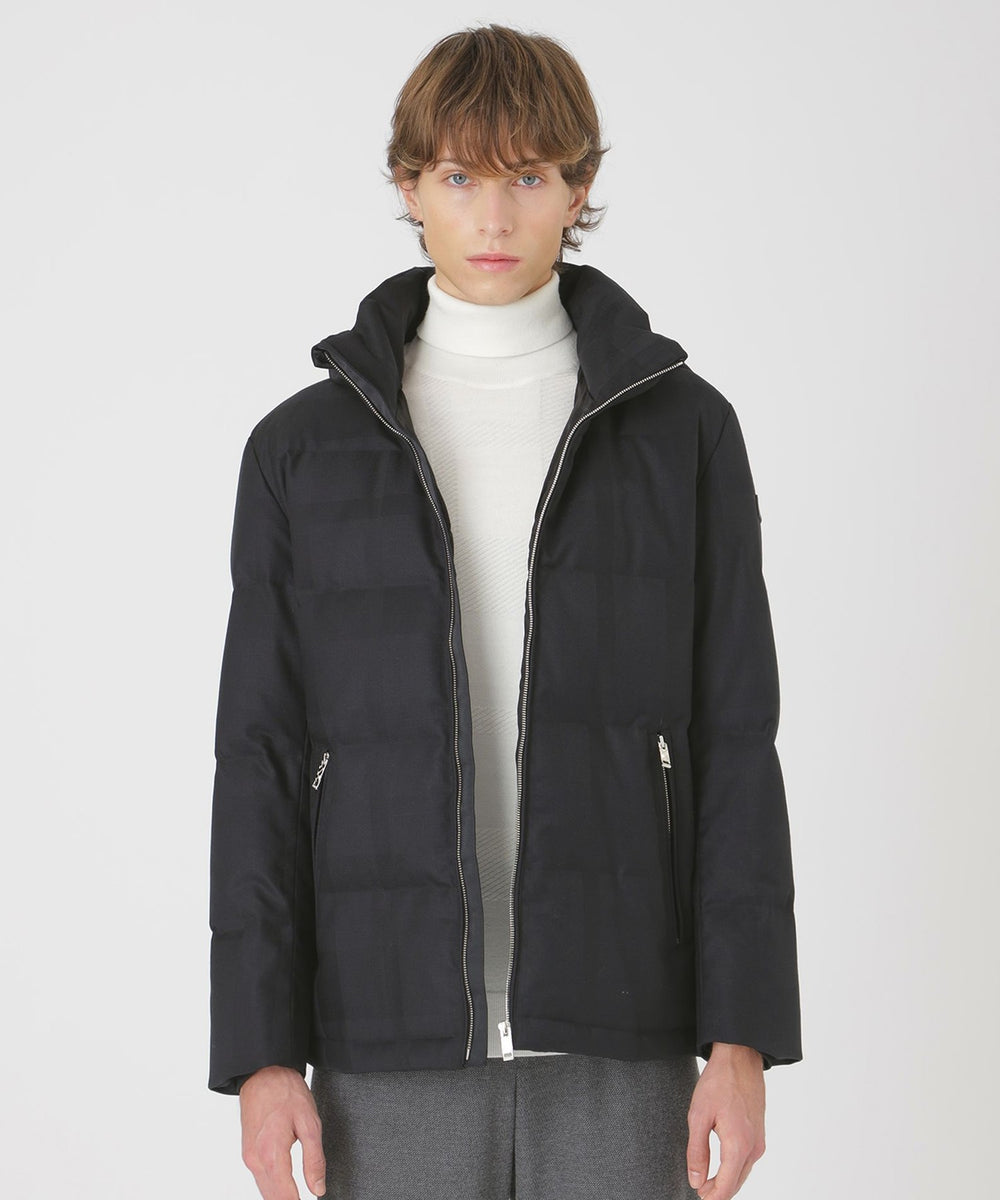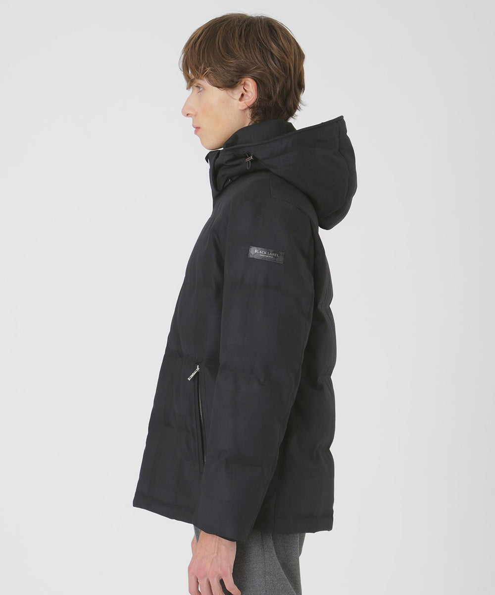 高級ウール原料を使用したシャドークレストブリッジチェックダウンジャケット。